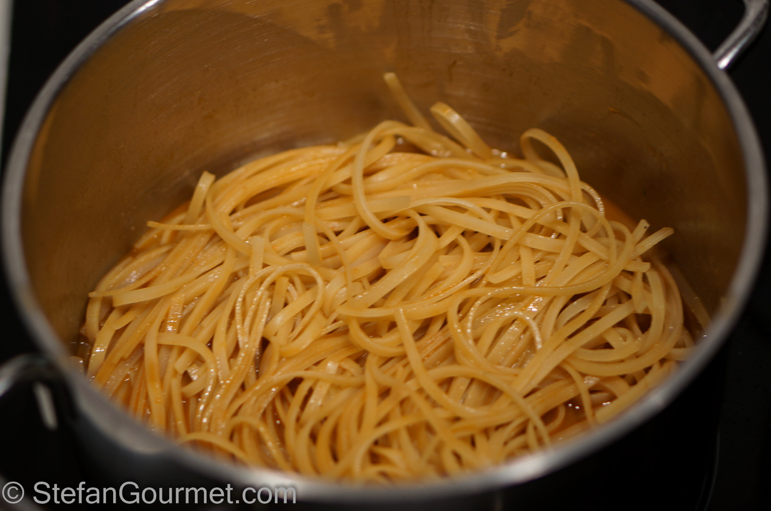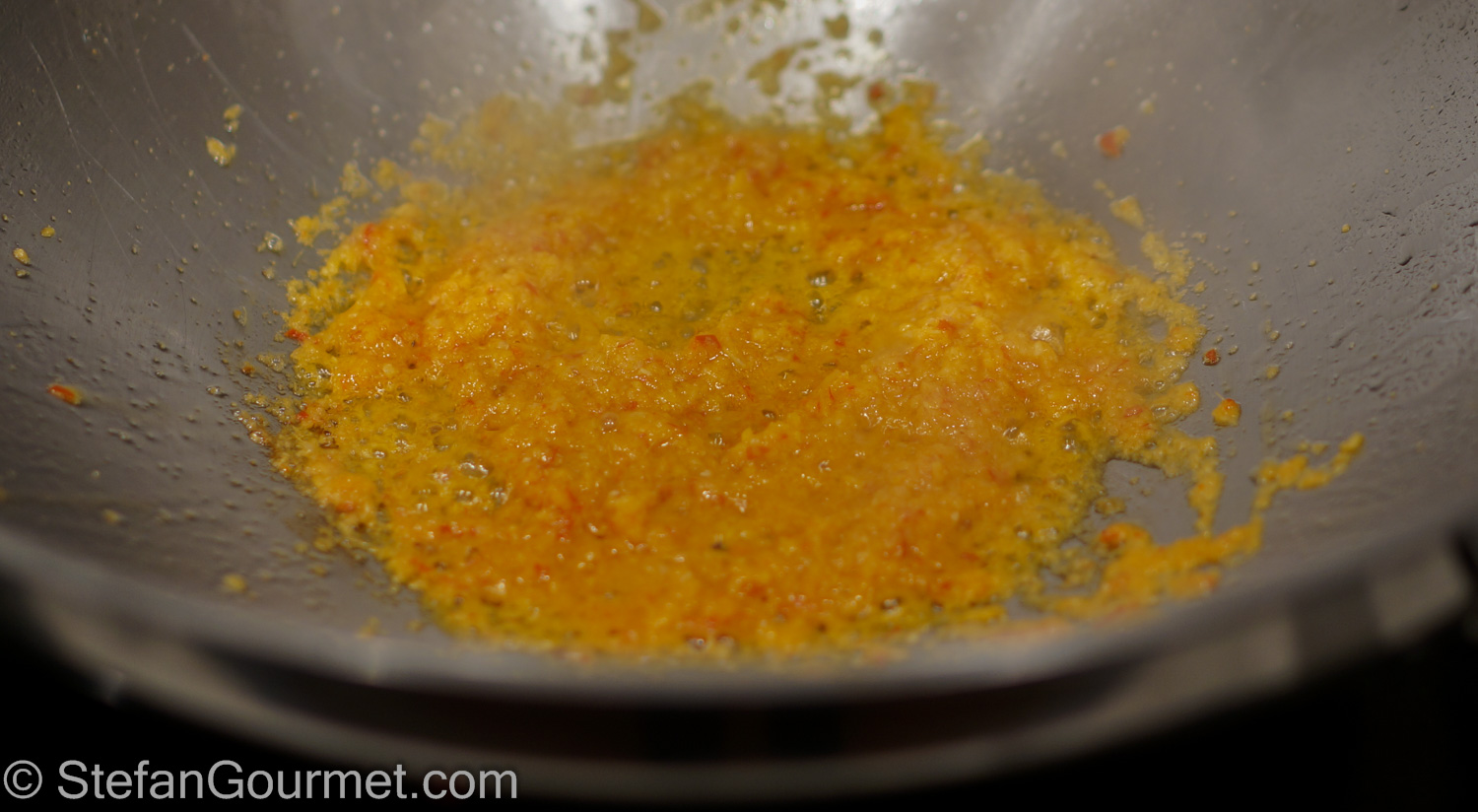 *If you don’t have leftover shrimp stock in your freezer, you can make it by buying shrimp with heads and shell still on, peeling them, sauteing the heads and shells in a bit of oil and then simmering them in 500 ml (2 cups) of water for 20 minutes.