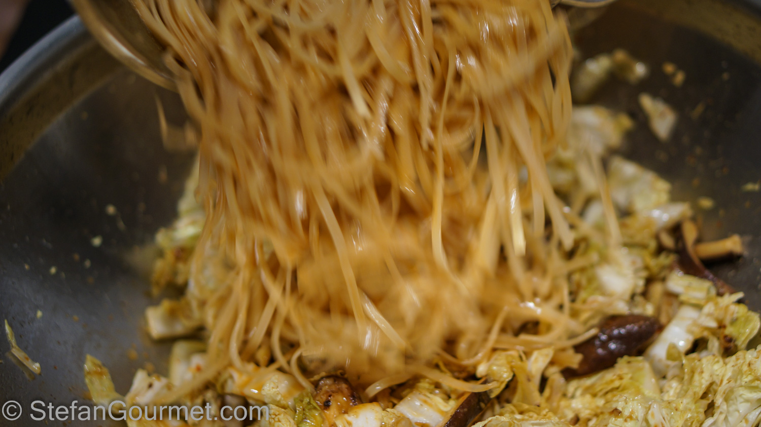 Rice Noodles with Shrimp, Shiitake and Cabbage
