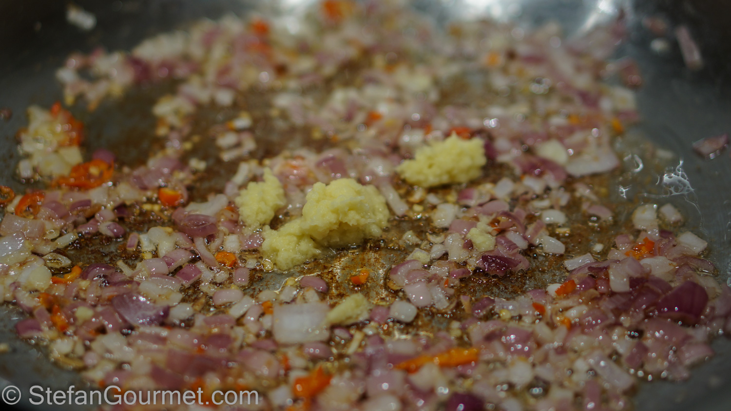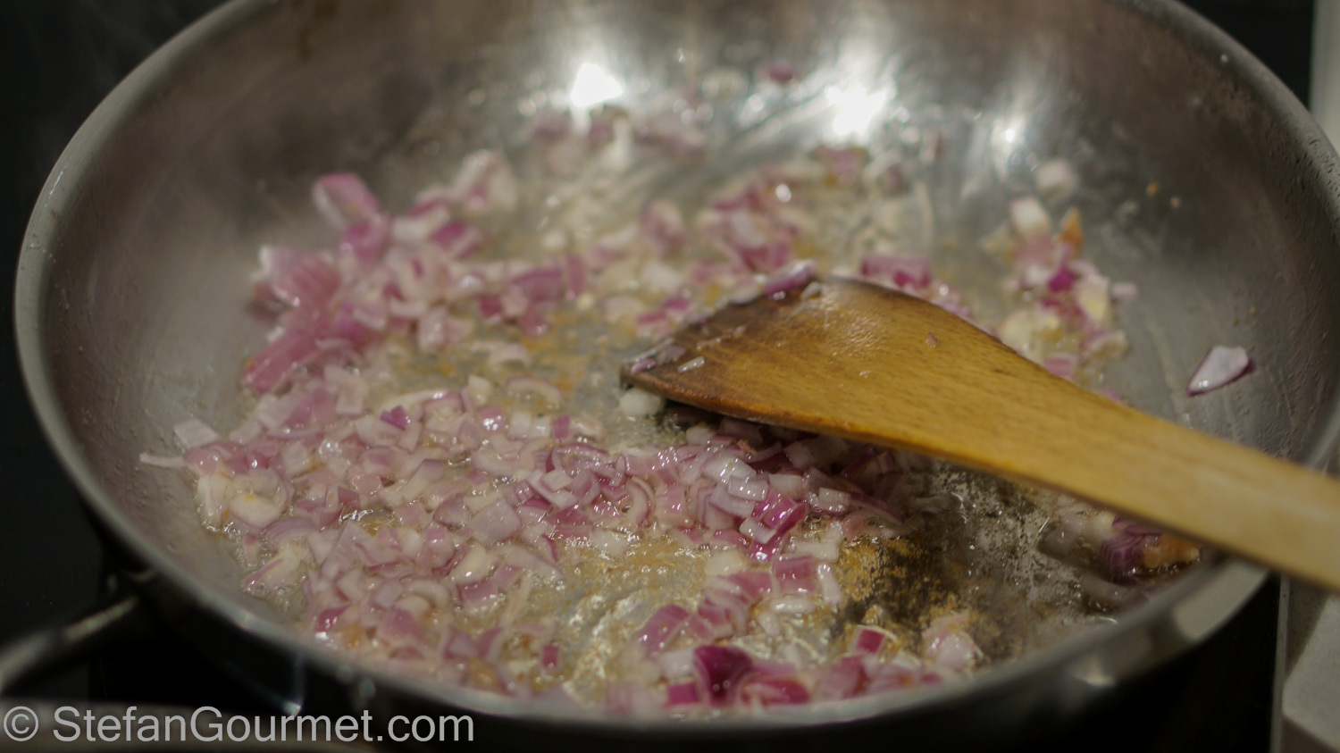 In the same frying pan add the shallots and sauté for about 5 minutes or until soft and fragrant. Do not allow the shallots to brown.