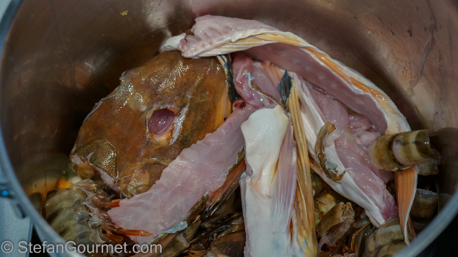 Prepare the fish stock and make sure you end up with about 600 ml (2 1/2 cups). Keep the stock hot.