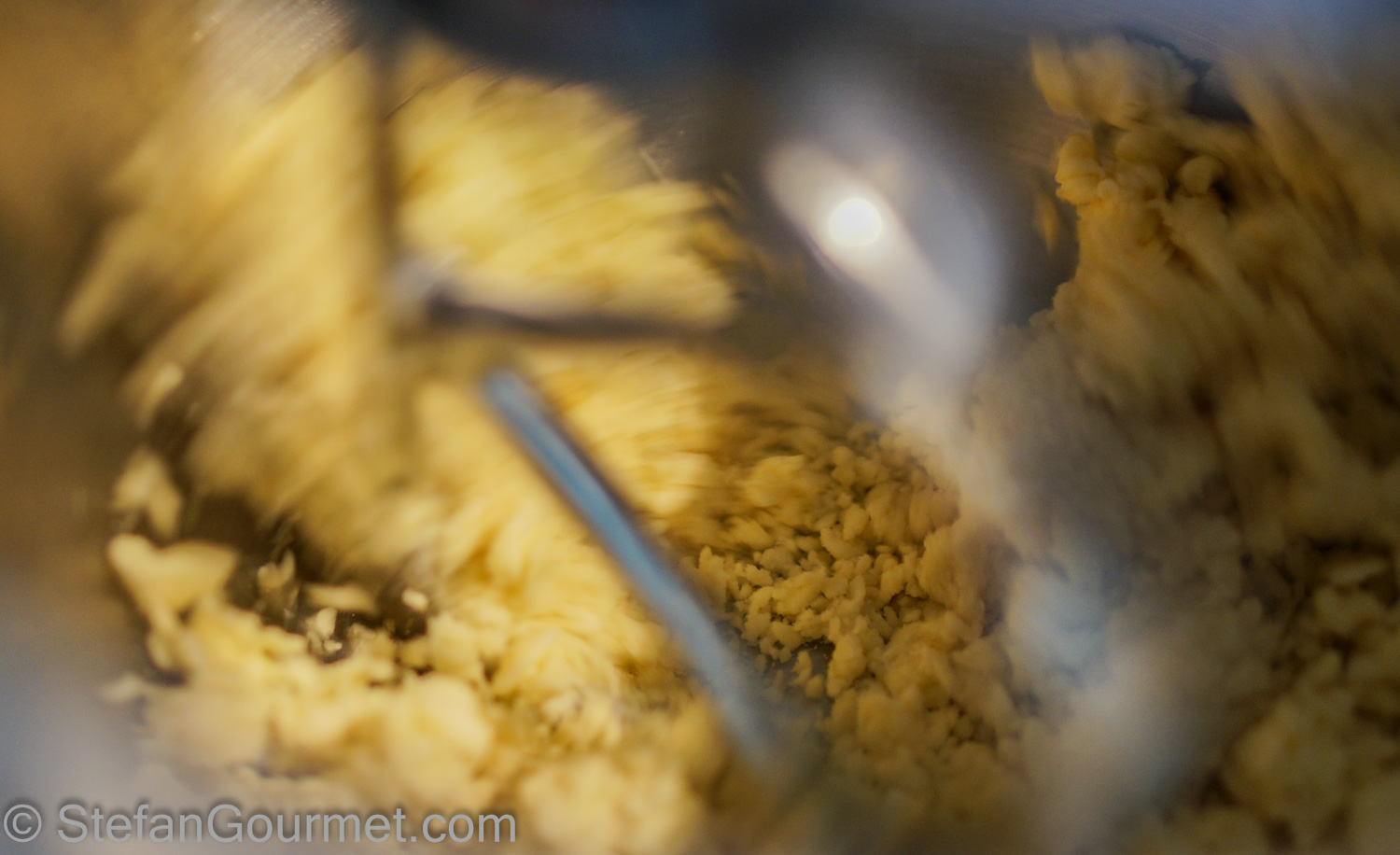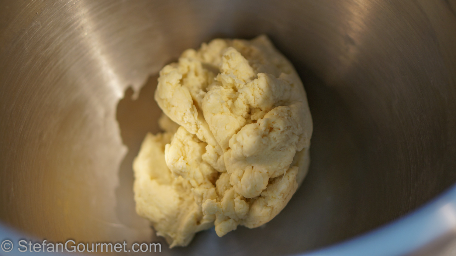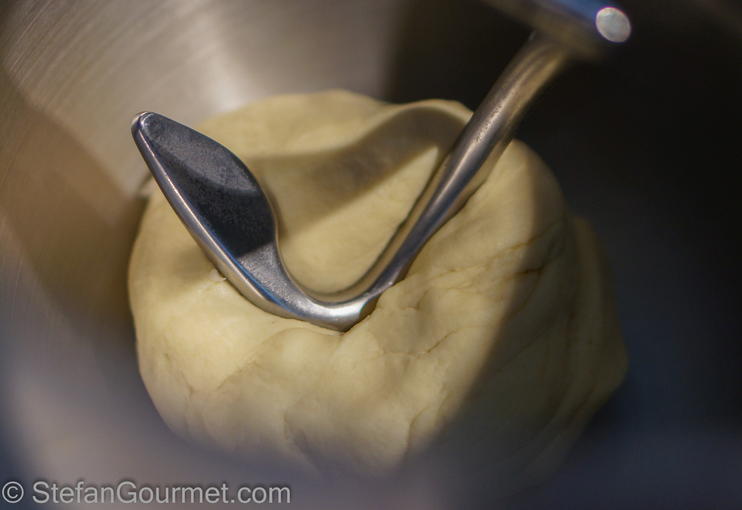Process with the paddle attachment until the dough comes together. You may need to add a bit more water (just a few drops at a time to avoid adding too much) if the dough doesn’t come together, or a bit more flour if it is too sticky.