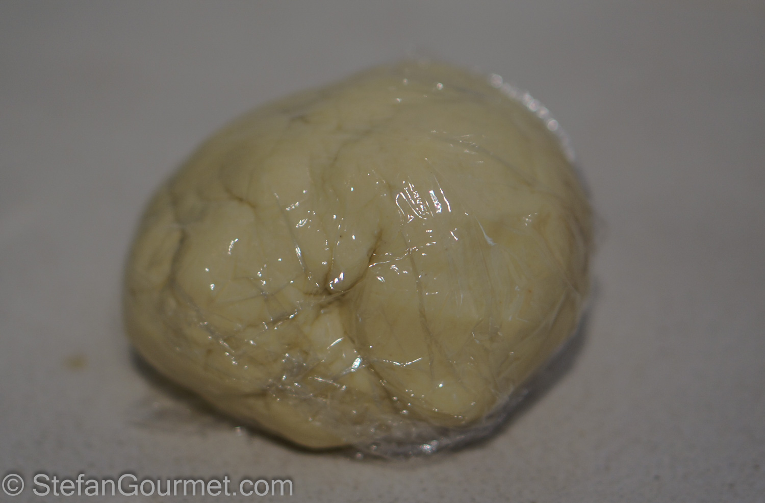 Wrap the dough in plastic wrap and allow to rest for half an hour at a cool place outside of the refrigerator.