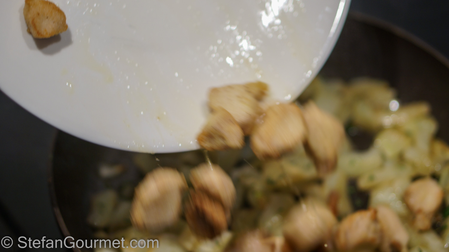 Add the rabbit pieces to the fennel and allow to warm through.