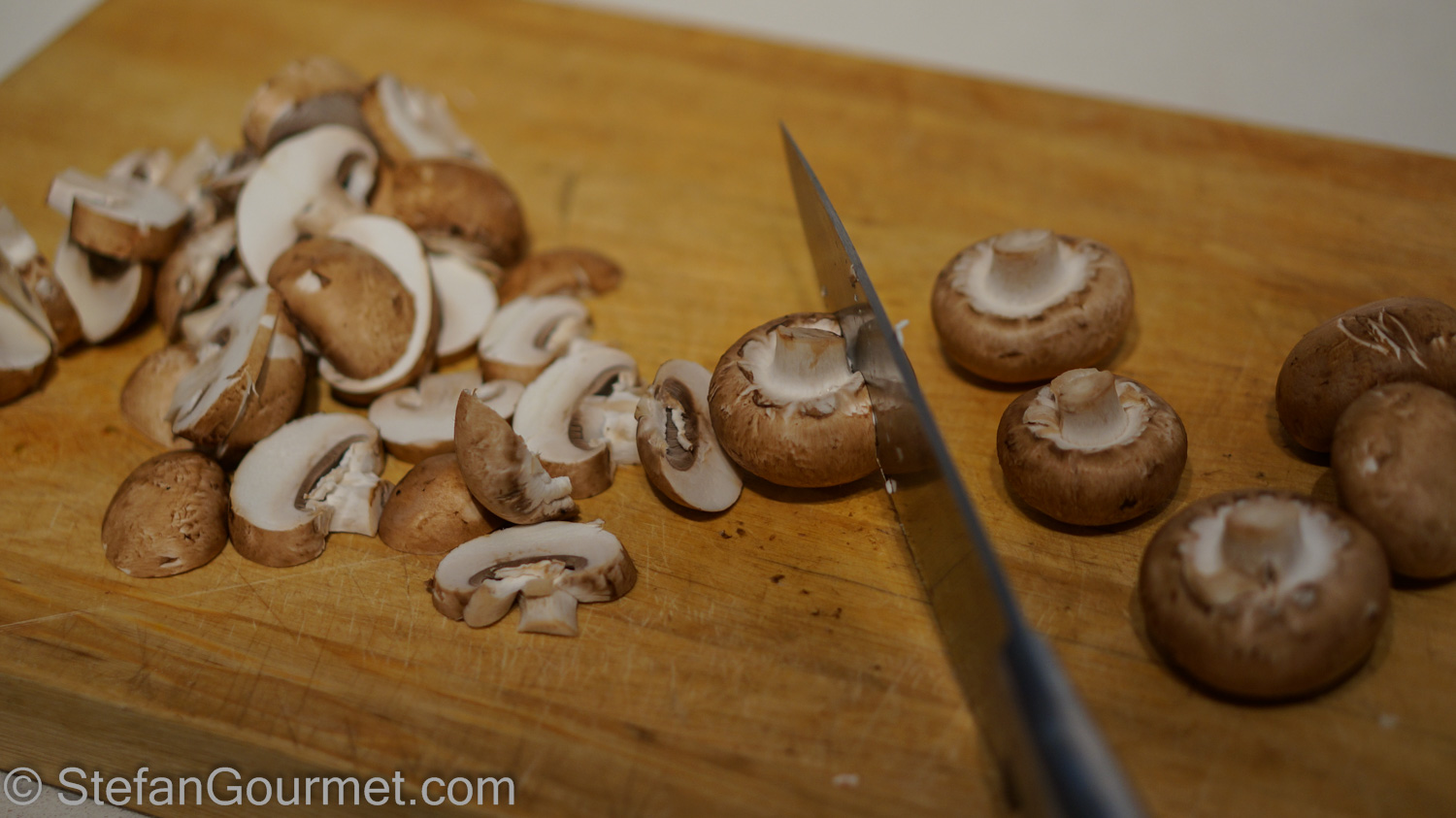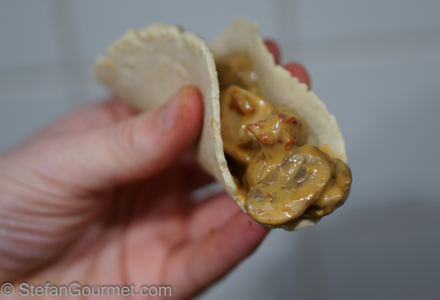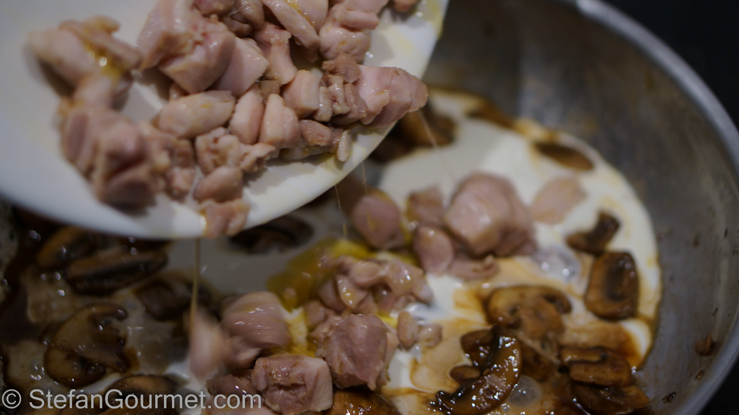 I found similar recipes on Mexican websites that included chicken stock cubes as well and use canned mushrooms. I decided to leave out the mayo and include concentrated homemade chicken stock to boost the chicken flavor. It goes without saying I used fresh mushrooms. I also prepared some homemade corn tortillas to serve this with (flour tortillas are not Mexican and corn tortillas are easier to make). I was very happy with the result and thought it was creamy enough without the mayo. The chicken stock did really boost the chicken flavor. The combination of chicken with mushrooms, cream, and the spiciness of the chipotle in adobo is delicious and has many layers of flavor. You can make it as spicy or as mild as you like by changing the amount of chipotle. This is a very easy dish that is absolutely wonderful and that I will definitely make again. Here’s what I did…