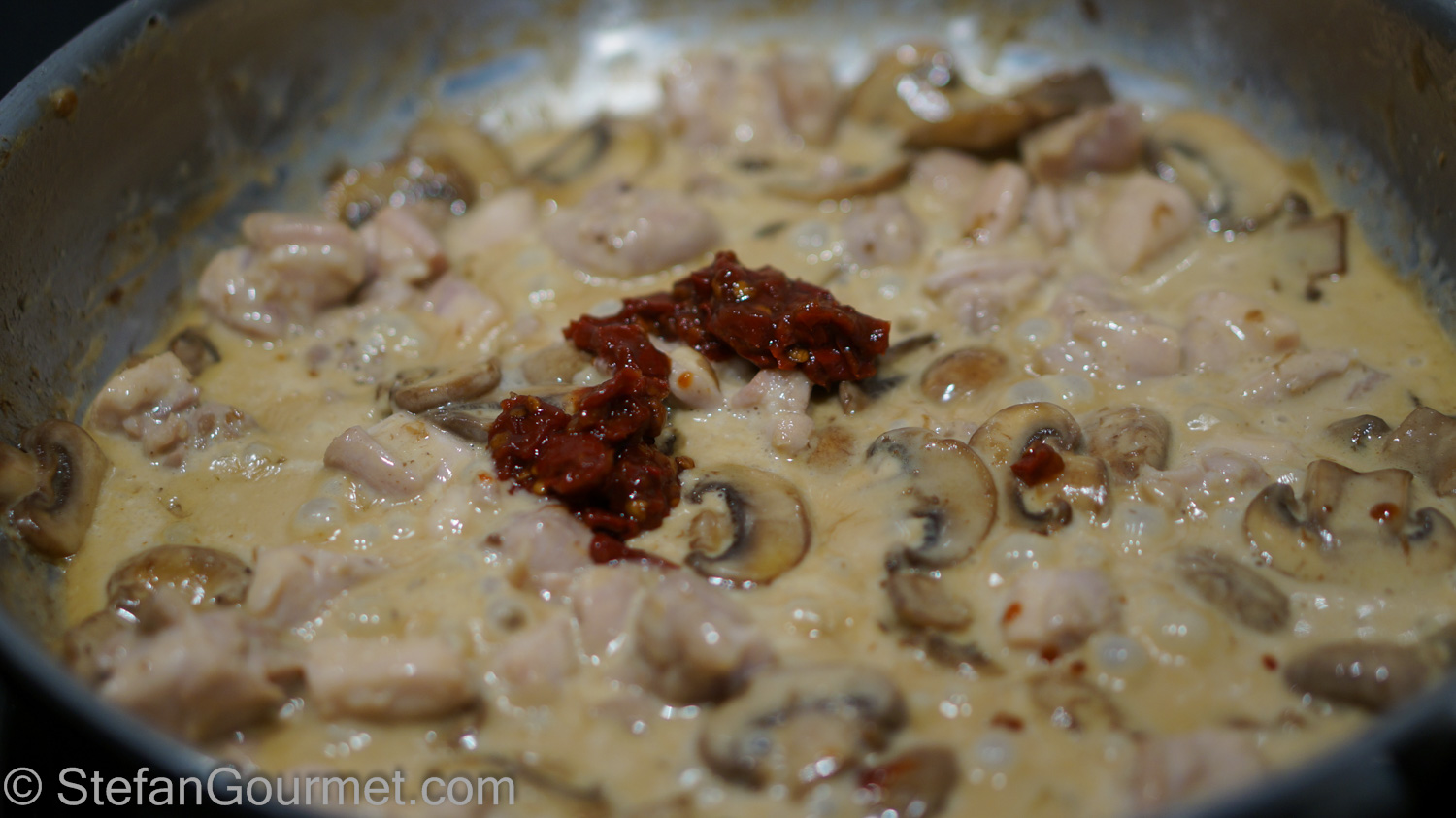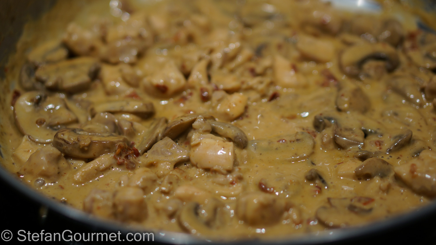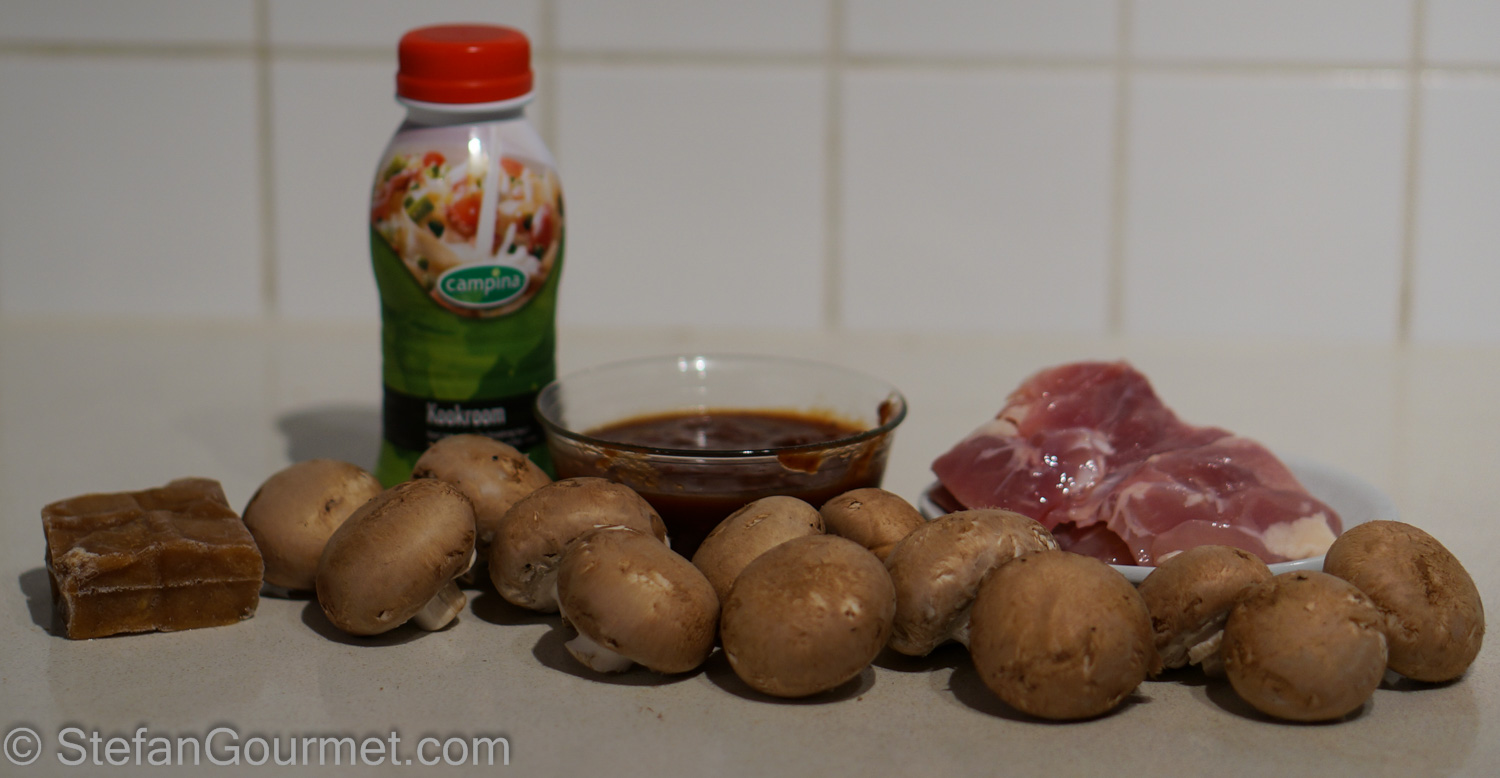 I found similar recipes on Mexican websites that included chicken stock cubes as well and use canned mushrooms. I decided to leave out the mayo and include concentrated homemade chicken stock to boost the chicken flavor. It goes without saying I used fresh mushrooms. I also prepared some homemade corn tortillas to serve this with (flour tortillas are not Mexican and corn tortillas are easier to make). I was very happy with the result and thought it was creamy enough without the mayo. The chicken stock did really boost the chicken flavor. The combination of chicken with mushrooms, cream, and the spiciness of the chipotle in adobo is delicious and has many layers of flavor. You can make it as spicy or as mild as you like by changing the amount of chipotle. This is a very easy dish that is absolutely wonderful and that I will definitely make again. Here’s what I did…