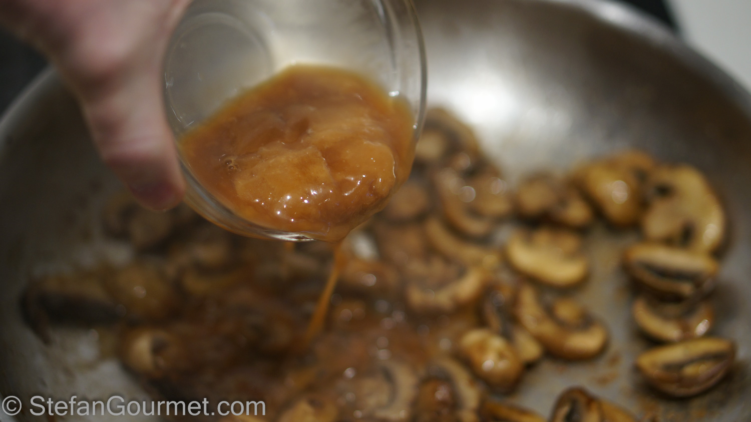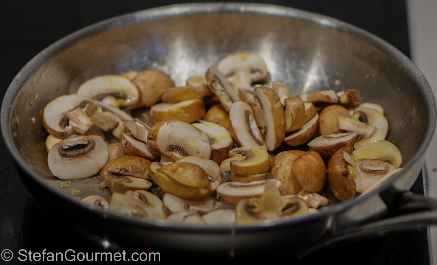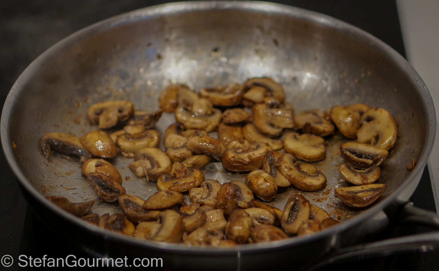Add the mushrooms to the same frying pan. Season with a bit of salt.