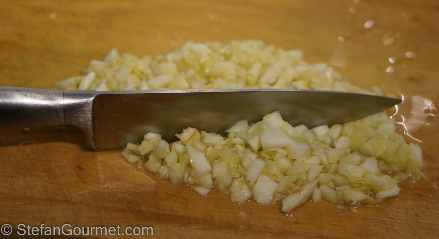 Finely chop the zucchini flesh and seeds.