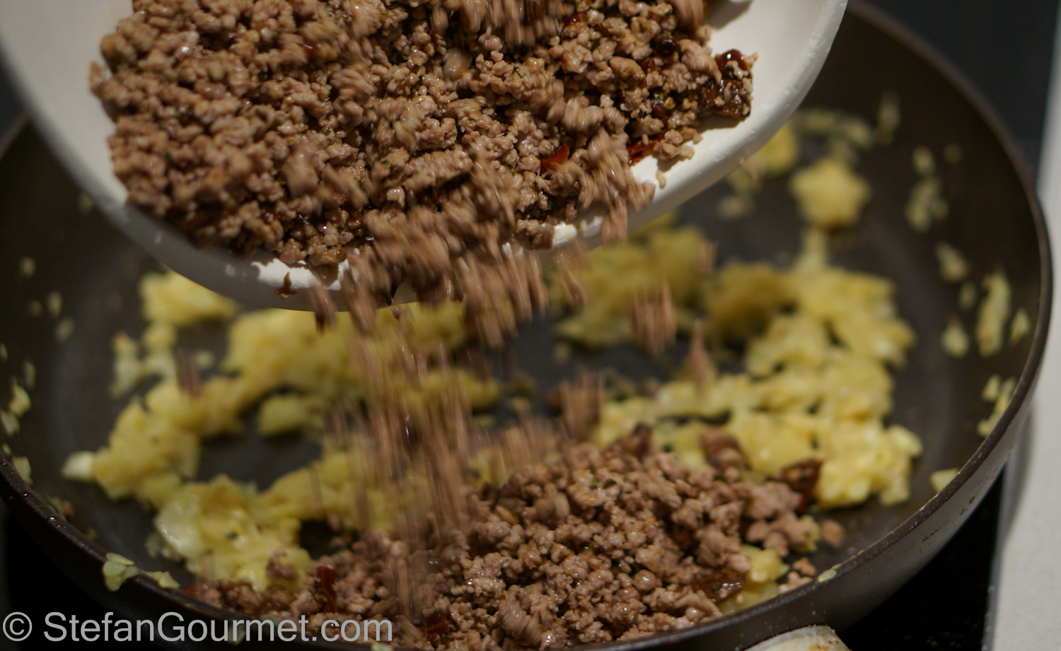 Keep cooking until the meat starts to ‘sizzle’.