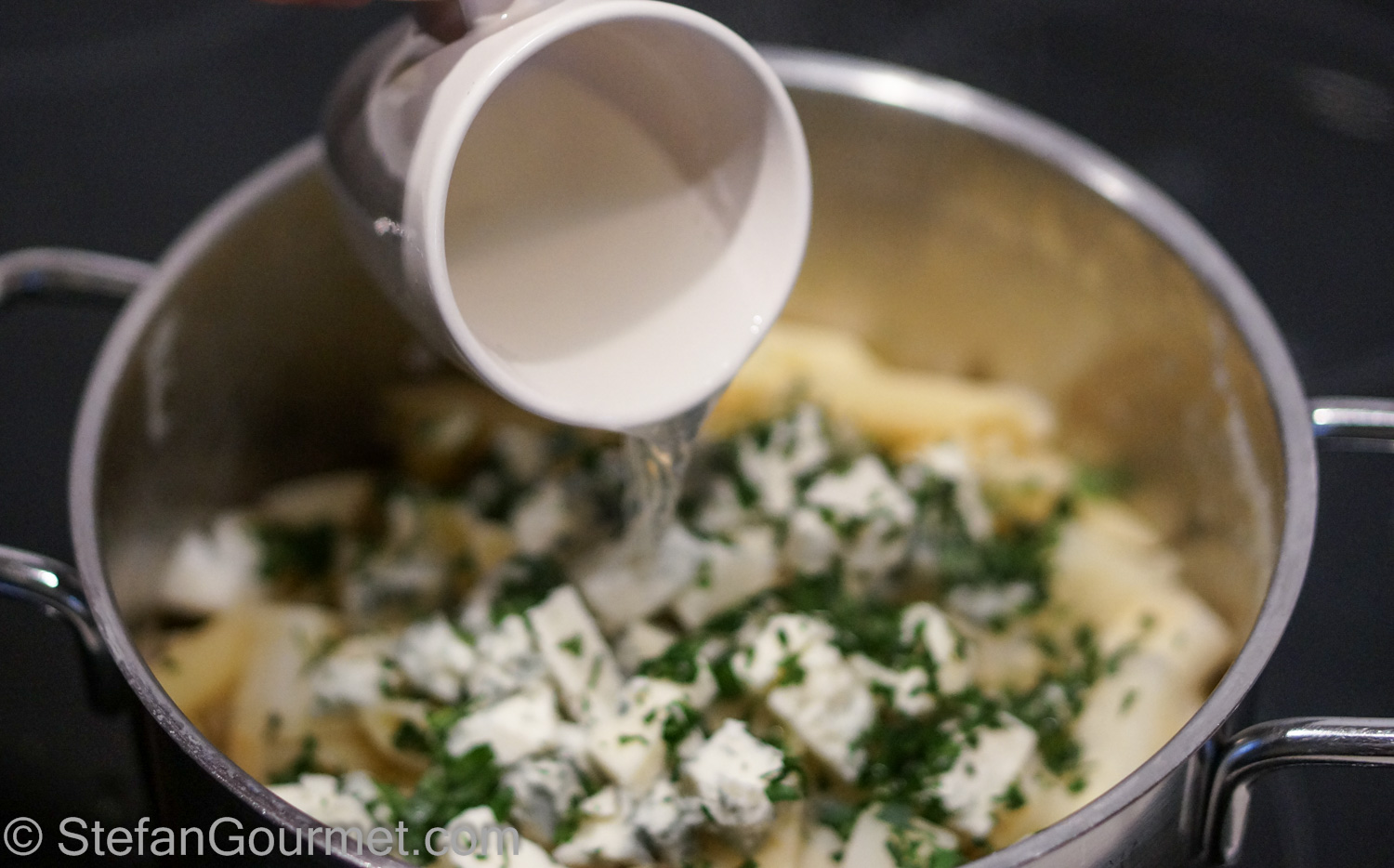 Add the celeriac sticks to the pasta to cook them along for the last 5 minutes.