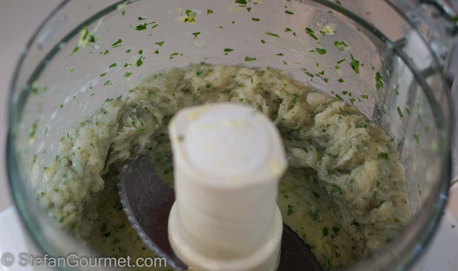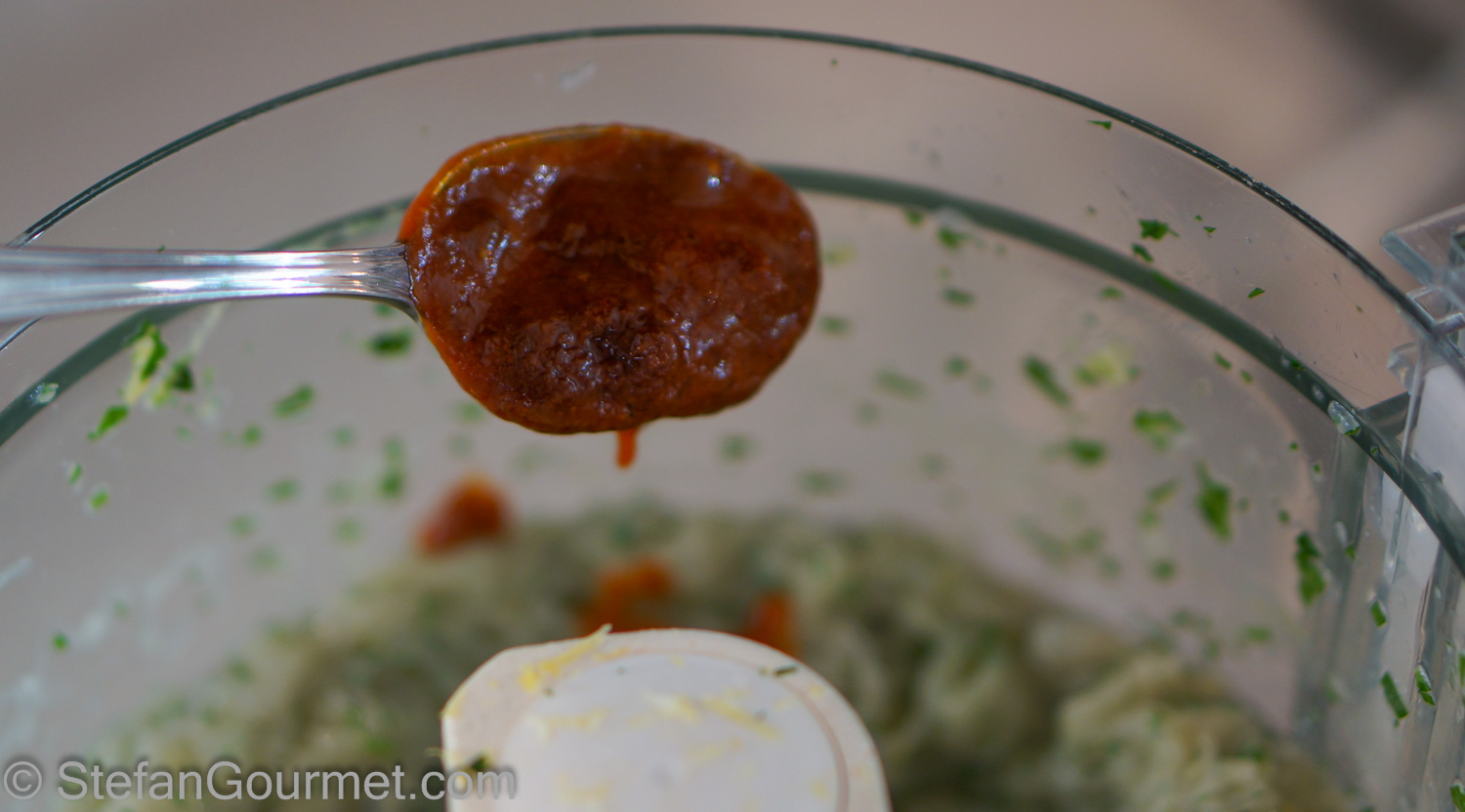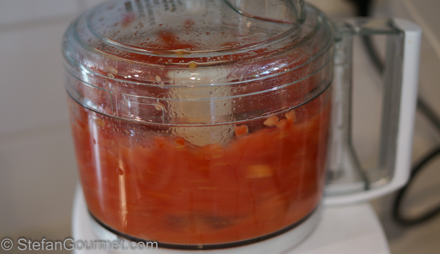 Meanwhile, prepare the pink sauce. Put the tomatoes in the food processor and process to a puree.