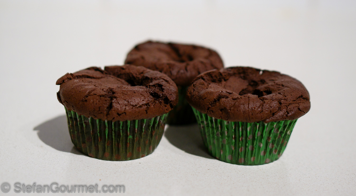 If you like chocolate, you will love these chocolate bombs. They use the same batter as the flourless chocolate cake I posted ages ago, but they bake more quickly and there is no need to glaze them. The secret ingredient is instant espresso powder: a little will boost the chocolate flavor without making the muffins taste like coffee.