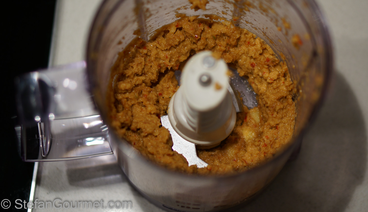 Combine the red curry paste with the dried shrimp and ginger in a blender. (You could also use the more traditional pestle and mortar.)