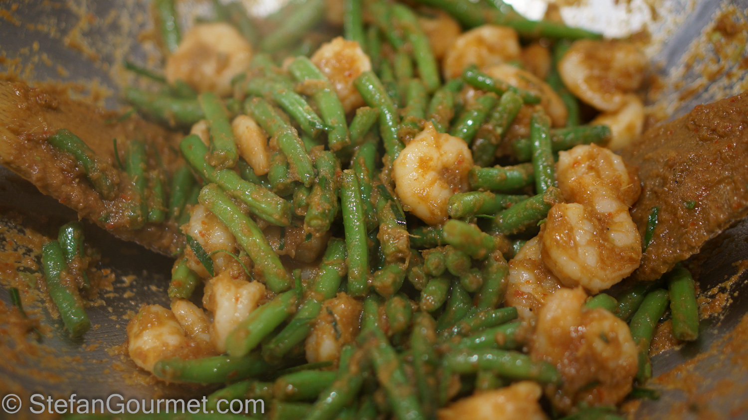 Shrimp and Green Beans with Thai Red Curry Paste (Pad Prik Khing Goong)
