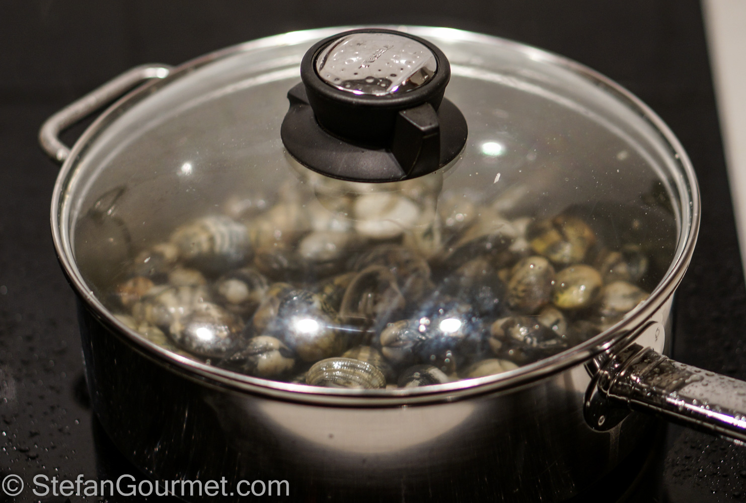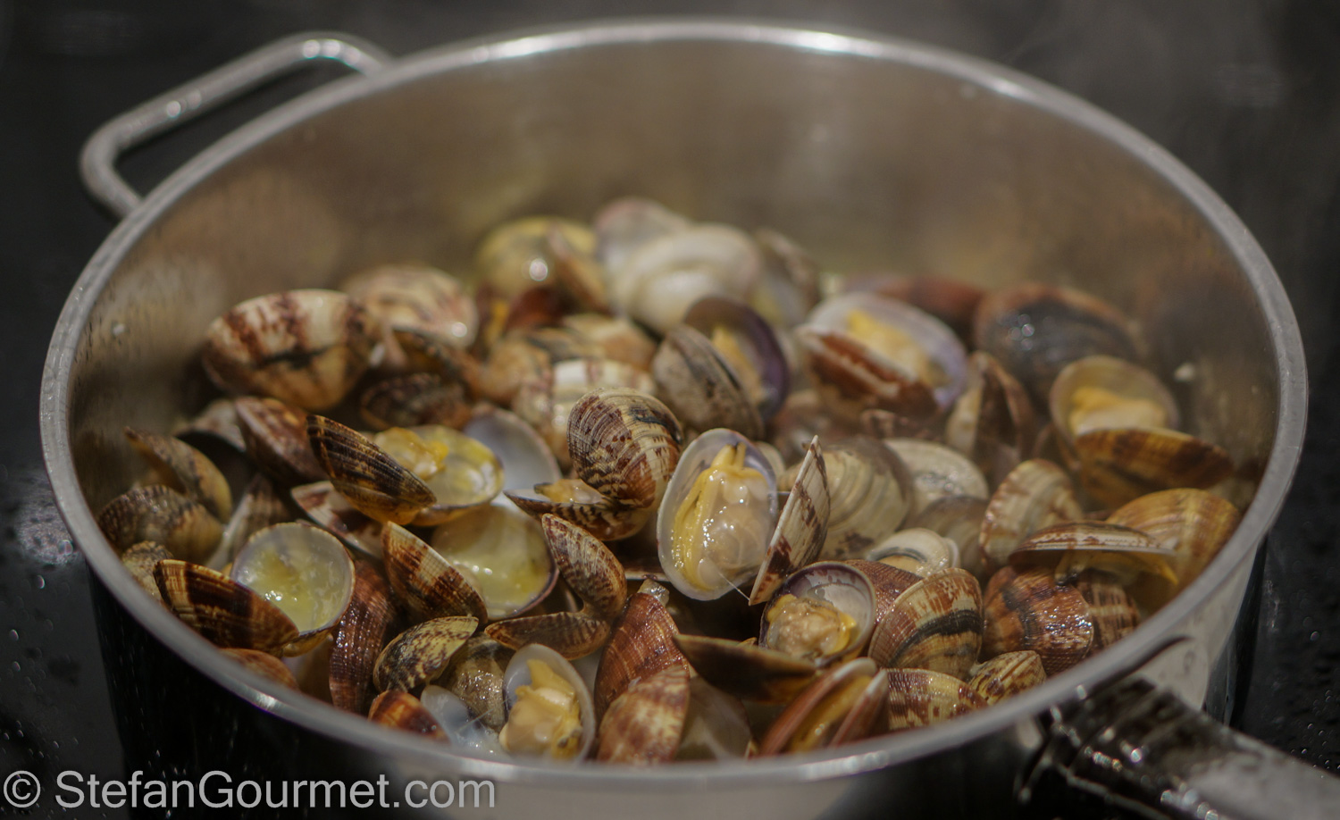 …until the clams have opened up. Turn off the heat.