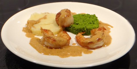 Wine is often paired with food, but it can be inspiring to take a bottle of wine as the starting point and try to cook something that will go well with it. Oak barrels can give a hint of vanilla to wines, and so I thought it would be fun to make a seafood dish with a vanilla cream sauce to go with a creamy oaked chardonnay, and thus created Scallops and Shrimp with a Vanilla Sauce, Pea Puree and Parsnip Puree. It worked out really well, and the wine pairing was outstanding. The wine went well with the vanilla creaminess of the sauce as well as with the scallops and shrimp. The combination of scallops with parsnip and peas is something I’ve used successfully before. This is a nice secondo piatto for an elegant dinner party or perhaps a nice appetizer for your Christmas menu if you make a smaller portion?