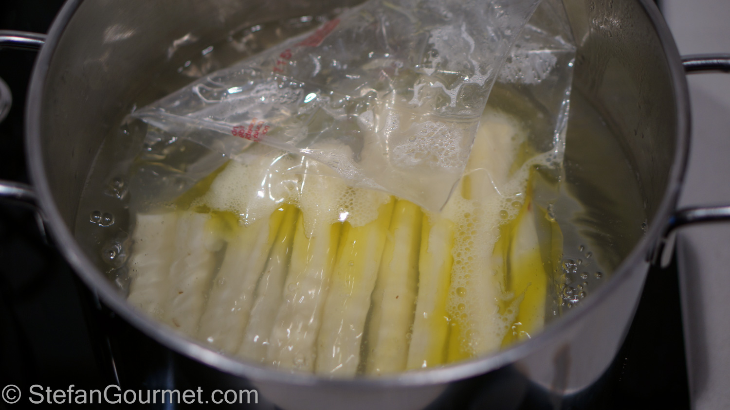 Cook the salsify sous-vide for an hour in water close to boiling (about 95ºC/203ºF).