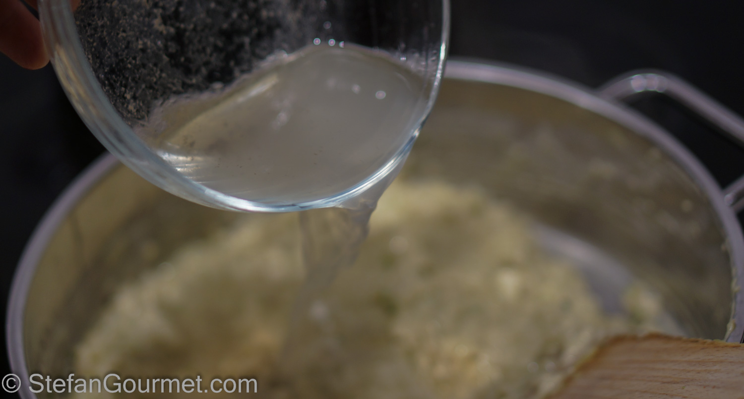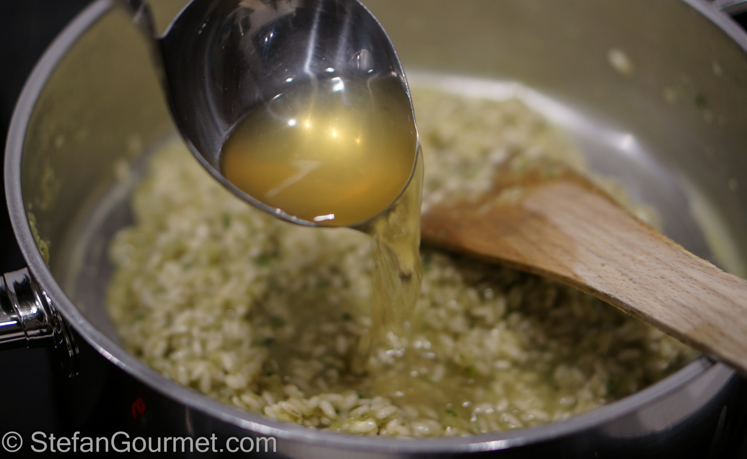 Add a ladle of hot vegetable stock…
