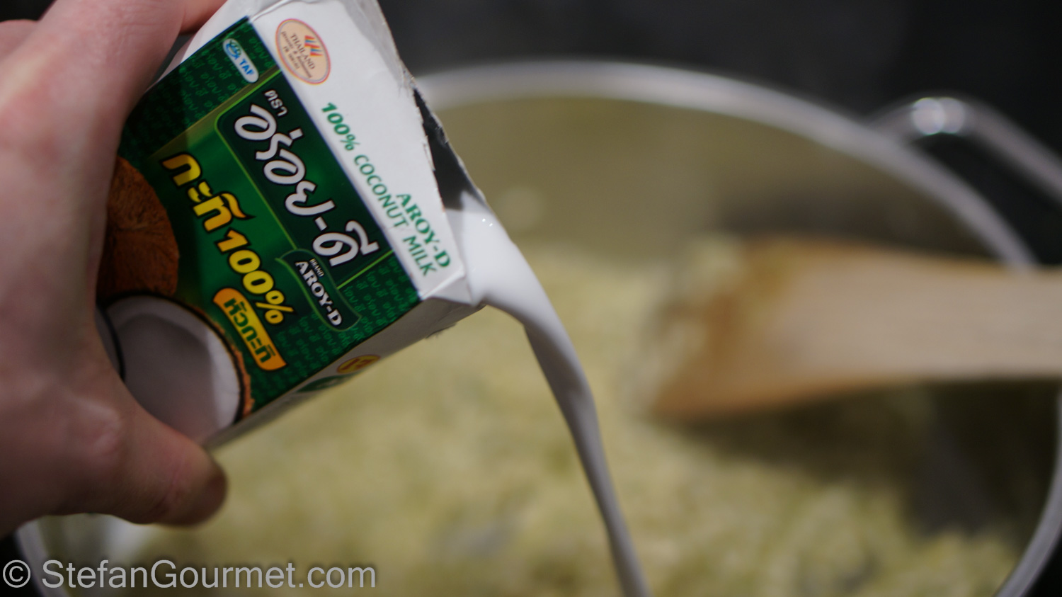 Now, add the coconut milk, and stir until it has been absorbed.