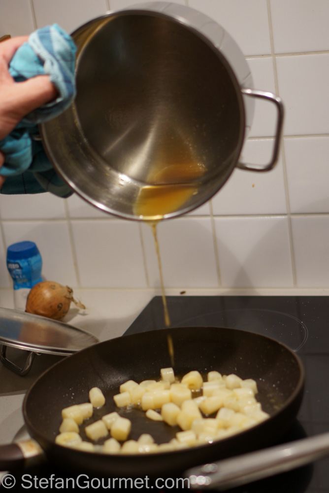 Meanwhile, cut the salsify into pieces and sauté them in a the remaining 2 Tbsp clarified butter.