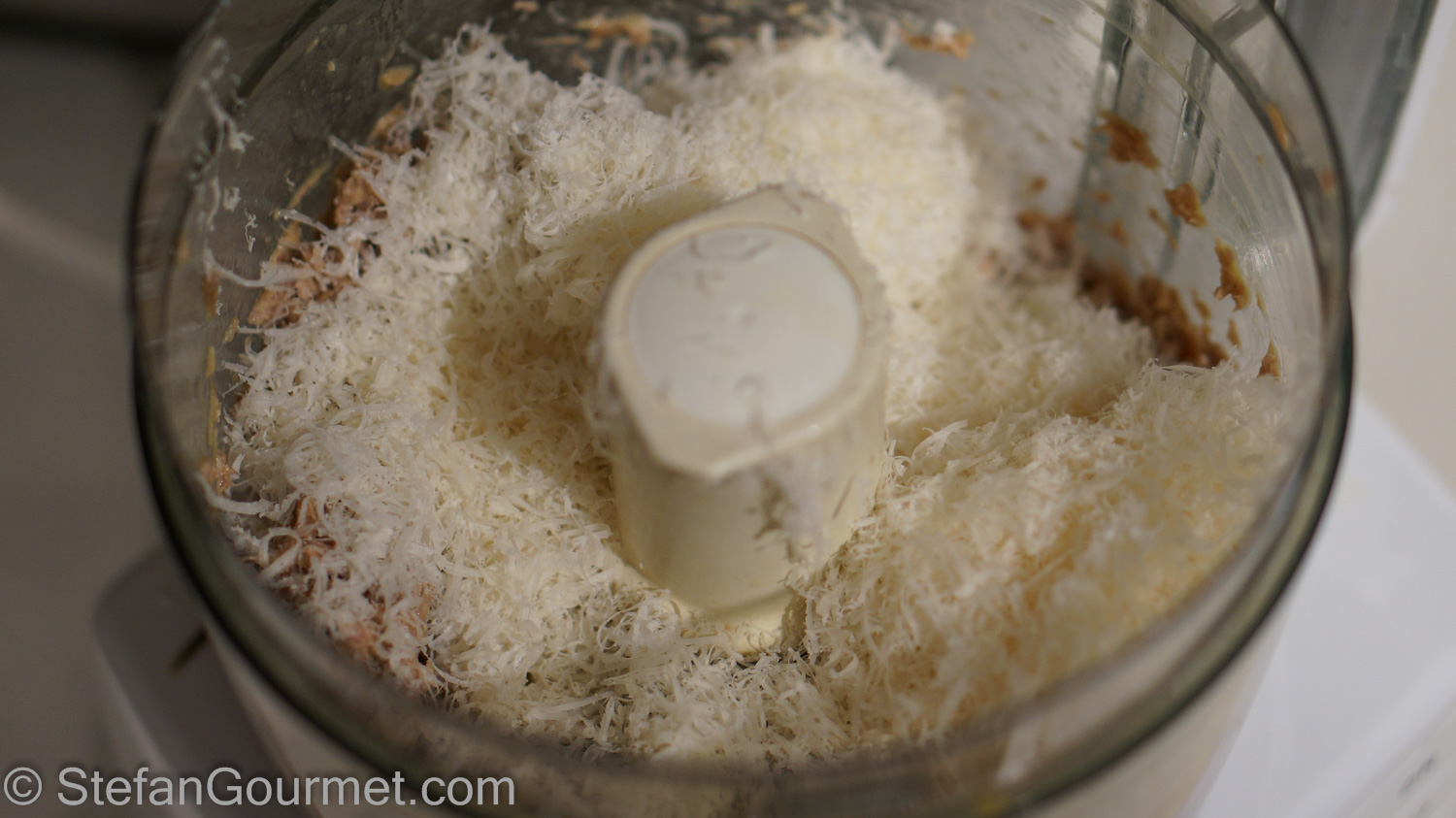 Process to incorporate. Now taste and adjust the seasoning with salt and freshly ground black pepper, remembering to slightly over-season the stuffing. (If you are worried about tasting the stuffing as it has raw egg in it, cook it briefly in a microwave or in a non-stick pan until cooked through before tasting.) Once the stuffing is to your liking, transfer it to a bowl, cover with plastic wrap, and refrigerate for a couple of hours to firm up.