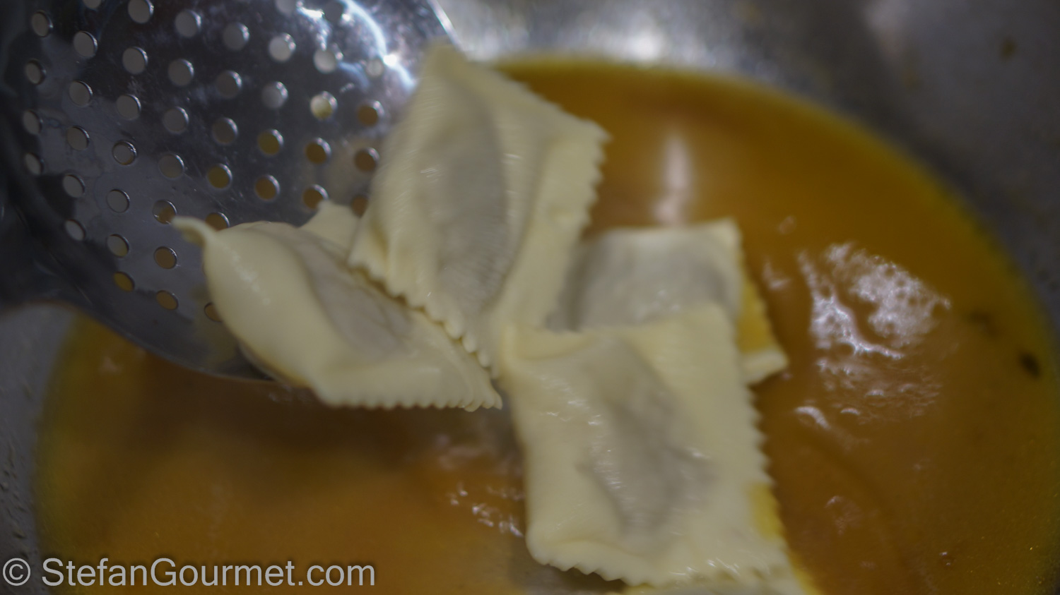 When you have added all of the ravioli, toss them gently to coat them with the juices.