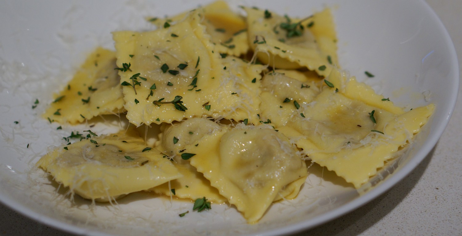 Serve the ravioli on preheated plates. Spoon over any remaining juices, and sprinkle with fresh thyme leaves and freshly grated parmigiano.