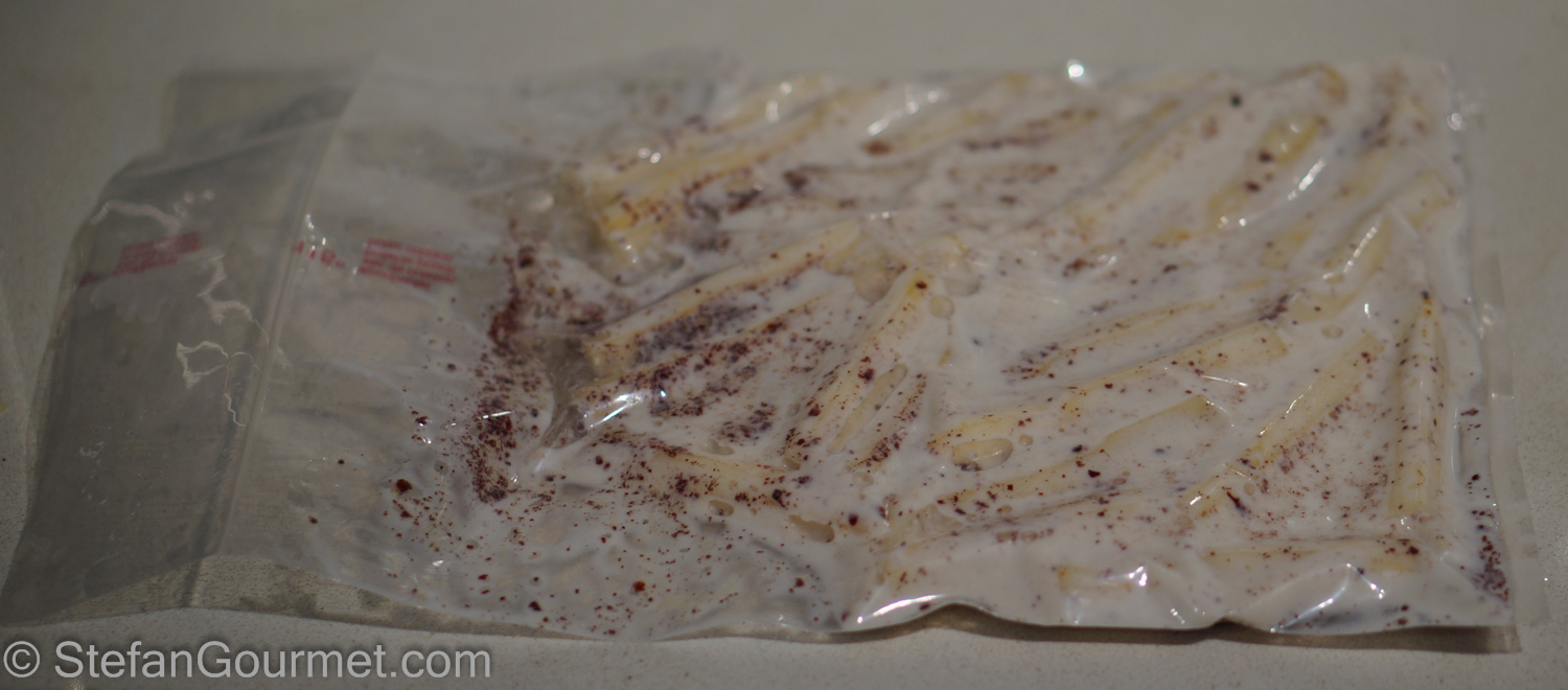 The advantage of cooking the salsify sous-vide is that you will need only 250 ml (1 cup) of milk. Add the sumac to the milk.