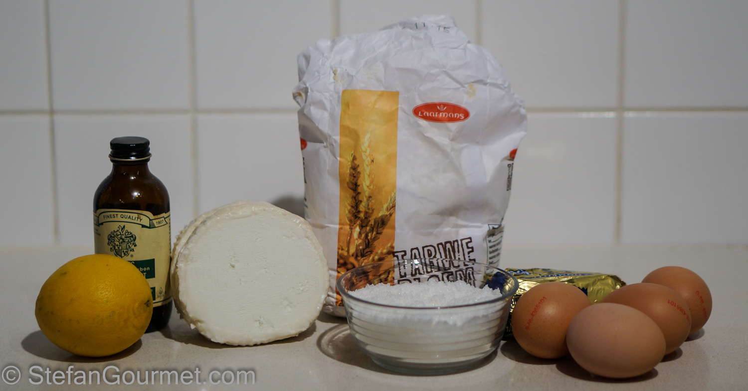 Gli ingredienti principali sono formaggio chèvre (formaggio francese di latte di capra), uova, zucchero e solo un pochino di farina. Il succo di limone, la buccia di limone e la vaniglia sono per dare più sapore alla torta.