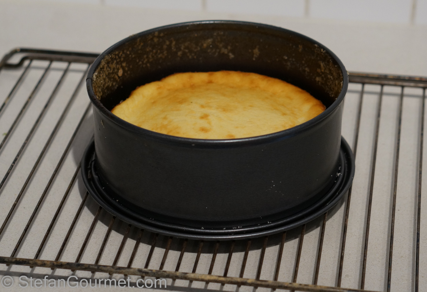 Bake at 175ºC/350ºF until the cake has set but still slightly jiggles in the center, about 20 minutes. (I did mine a couple minutes too long.)