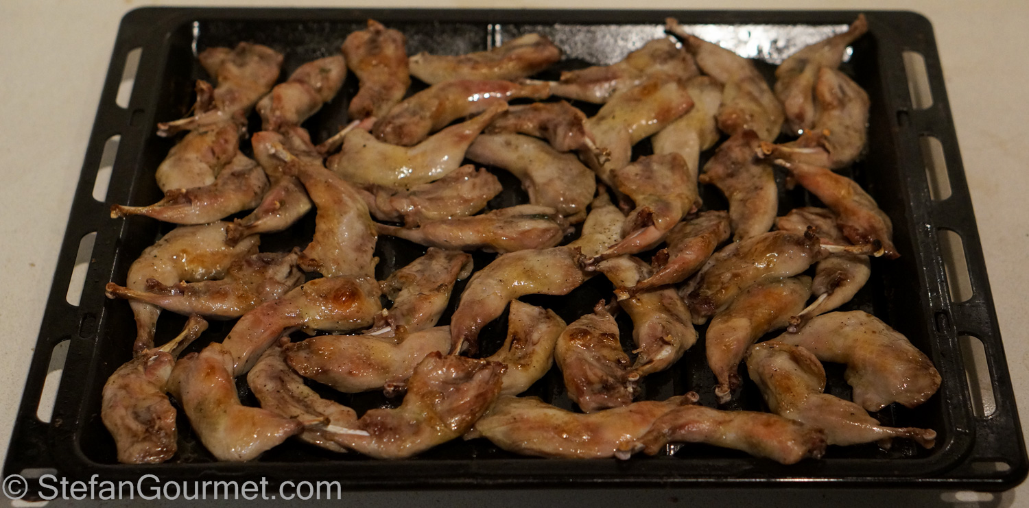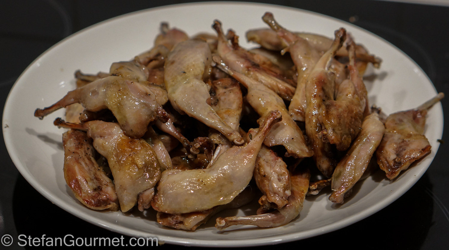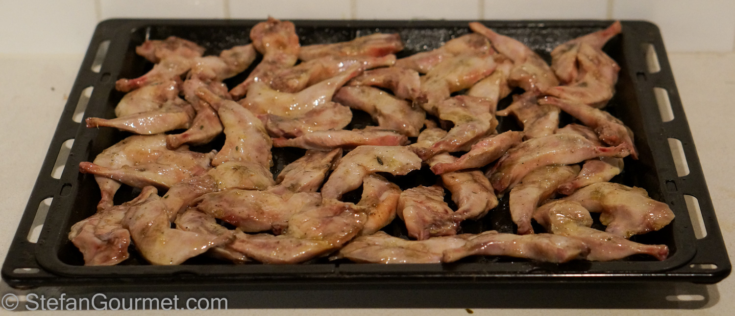 I made 3 kilos of the quail legs (about 120 legs), so I was very happy that I could buy them as quail legs and not as quails… They vanished quickly at the party because everyone liked them. No-one dared ask for ketchup. Here’s what I did…