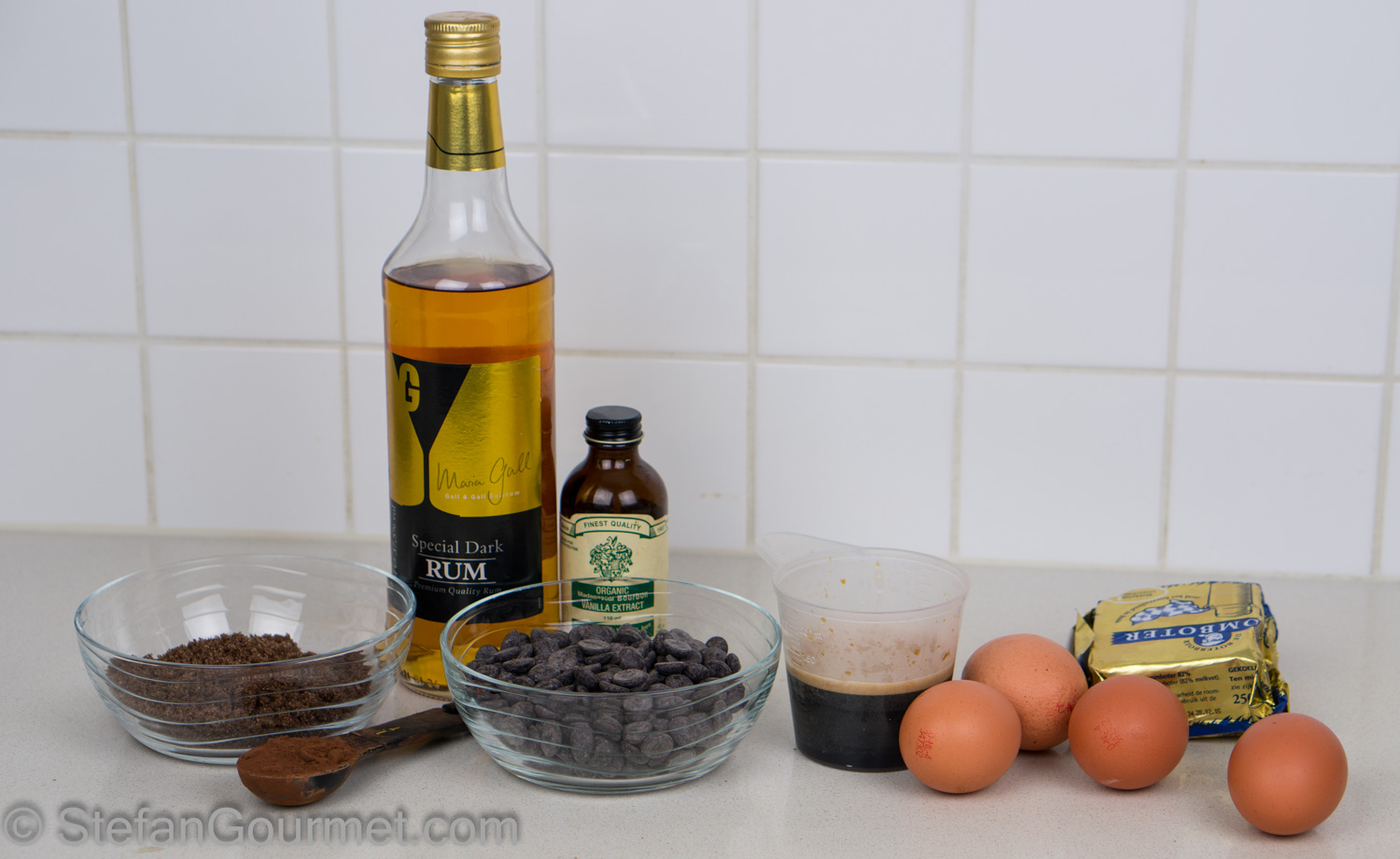 Weigh or measure all the ingredients and have them ready. Break up the chocolate into squares if needed, or use chocolate chips. Put them in the bowl of the food processor.