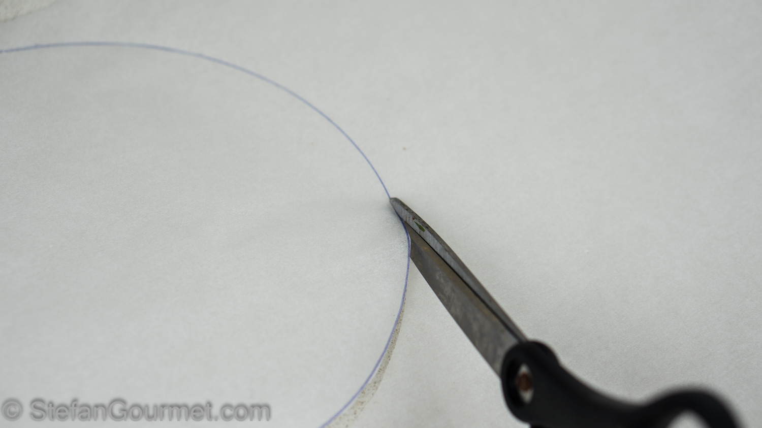 …and cut it out. Cut out one or more rectangular strips to cover the sides of the springform pan as well.