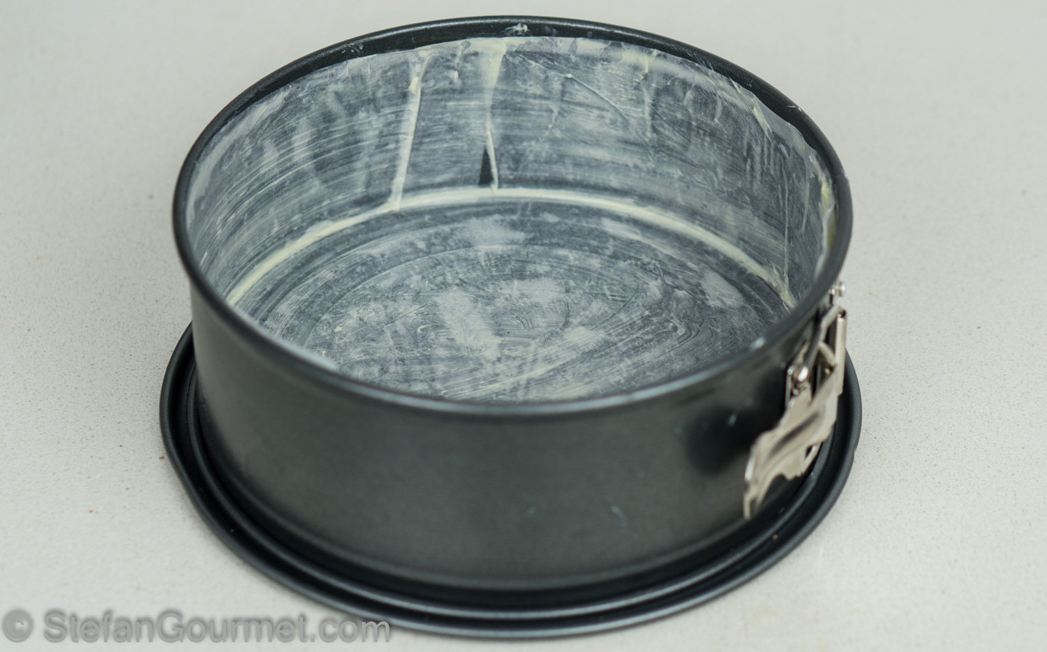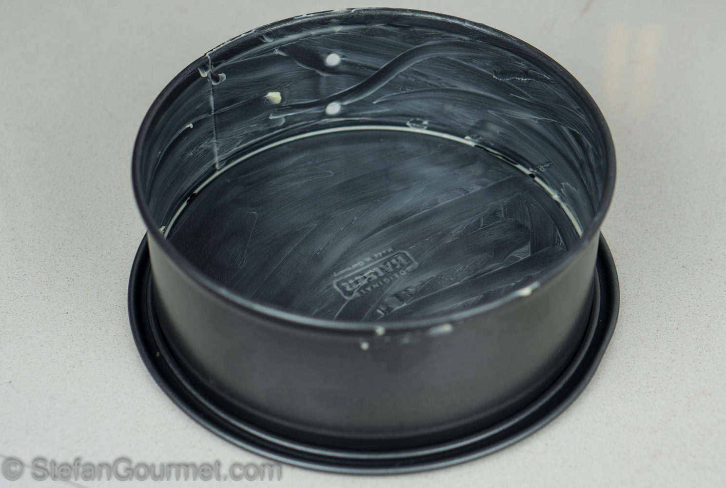 …and butter the parchment paper. This way, the chocolate cake will come out in one piece, guaranteed.