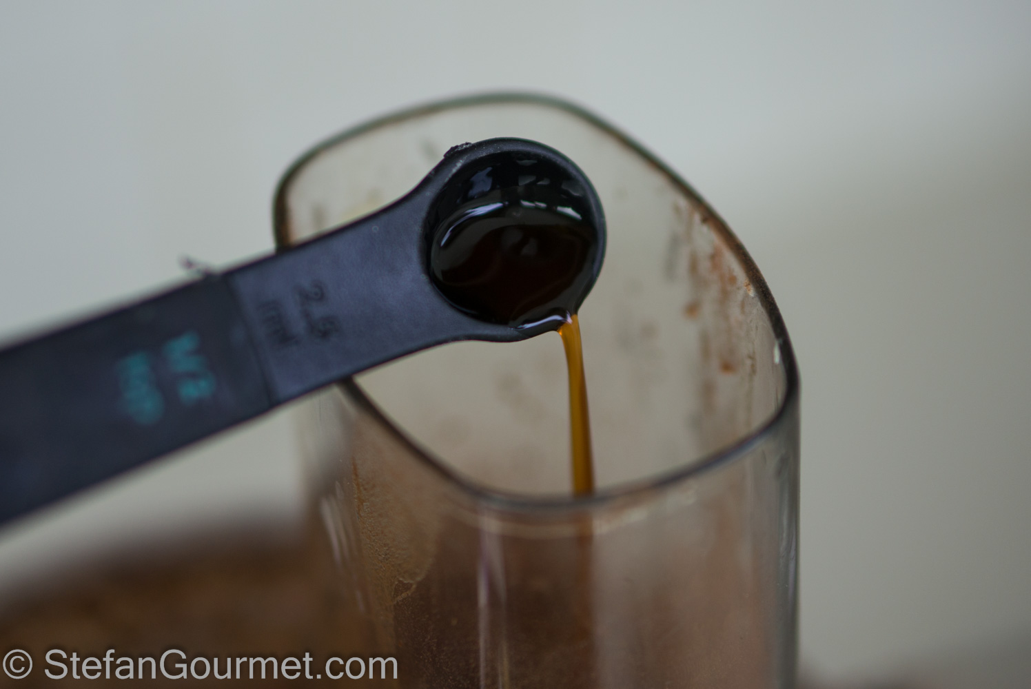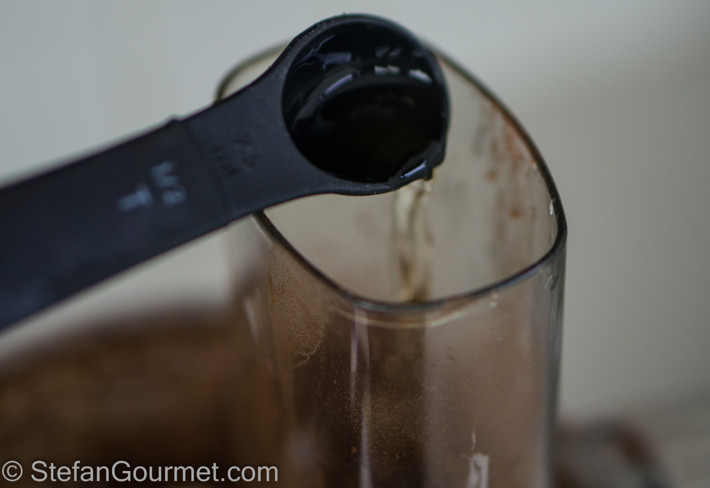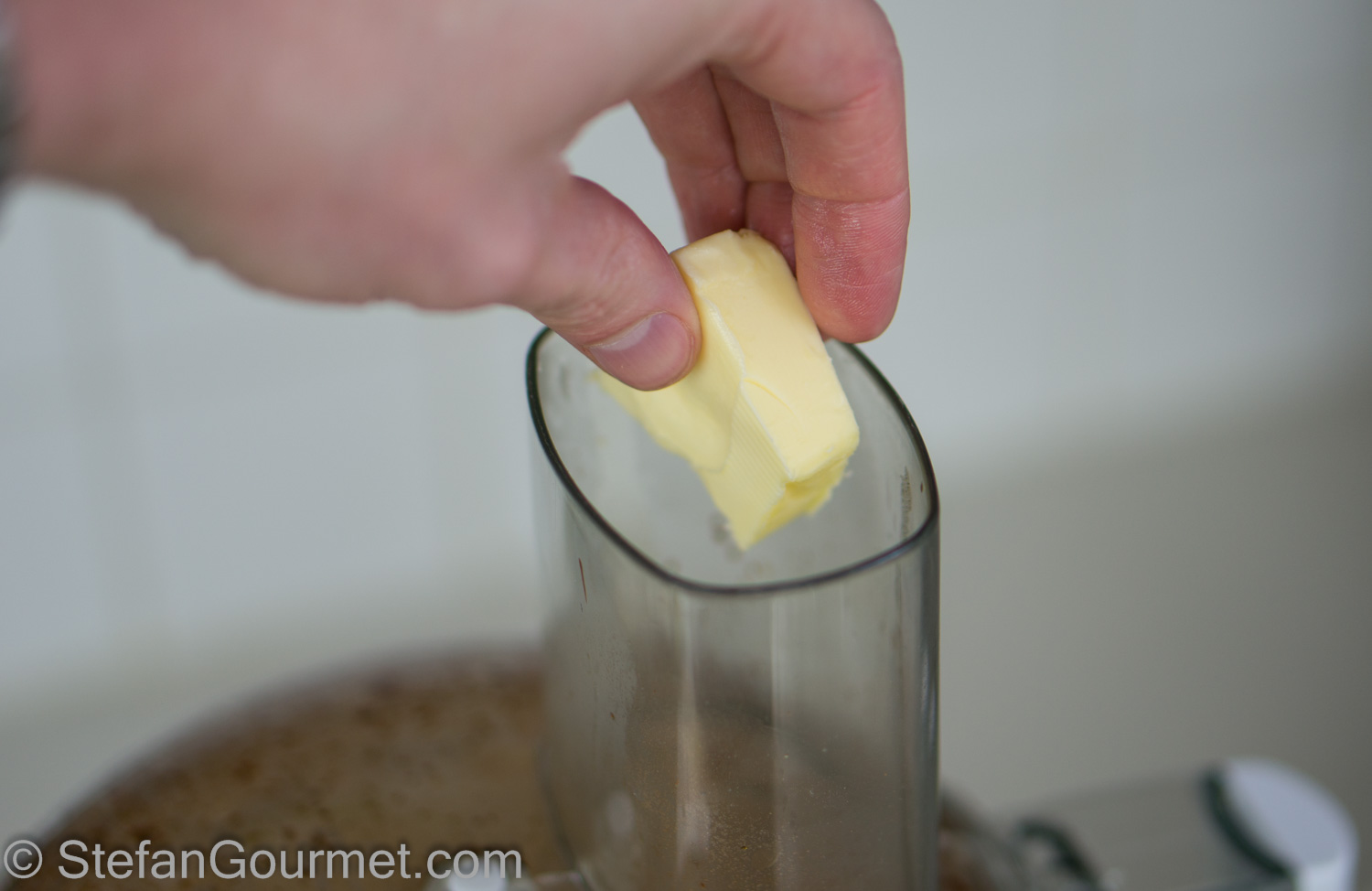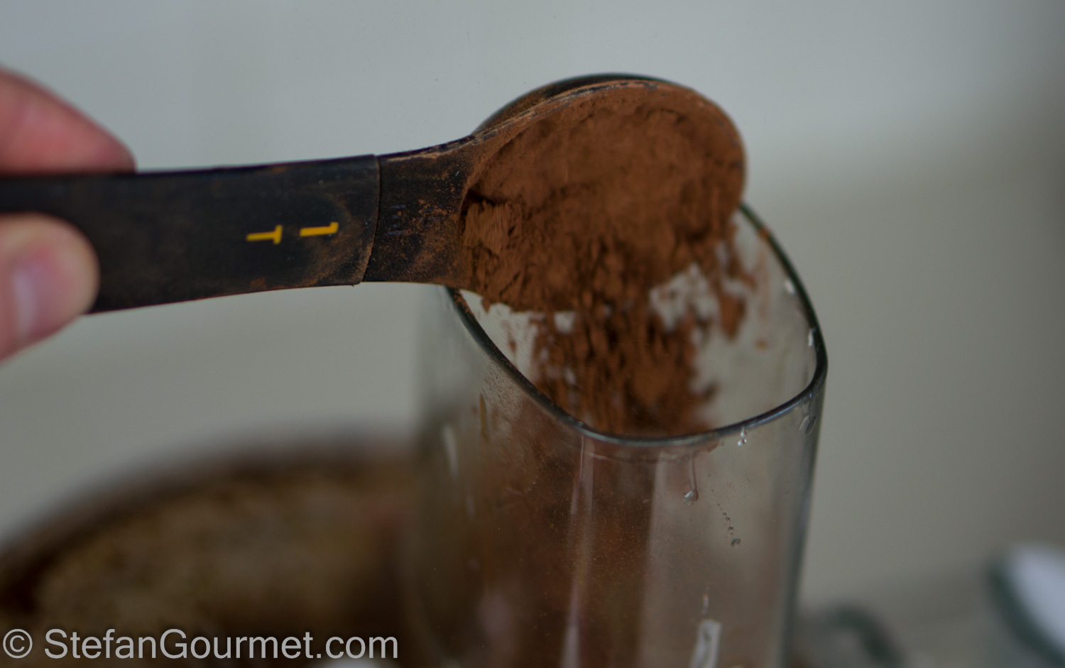 Once the chocolate is ground, add the hot espresso through the feeding tube with the motor running. (Heat it up in the microwave if needed.)