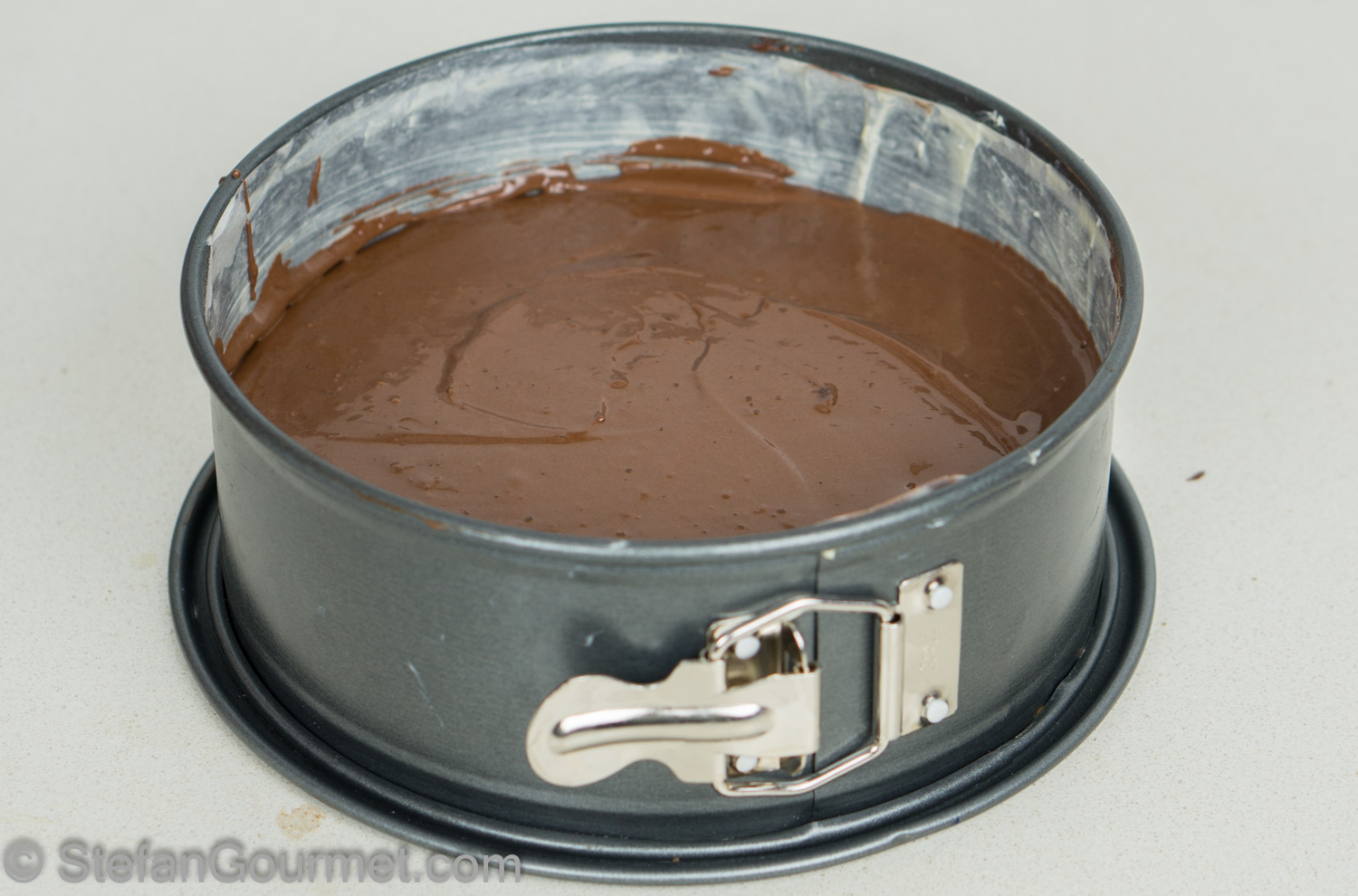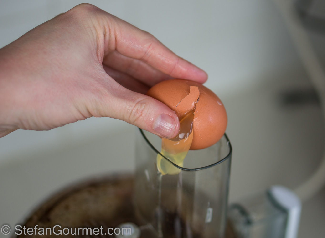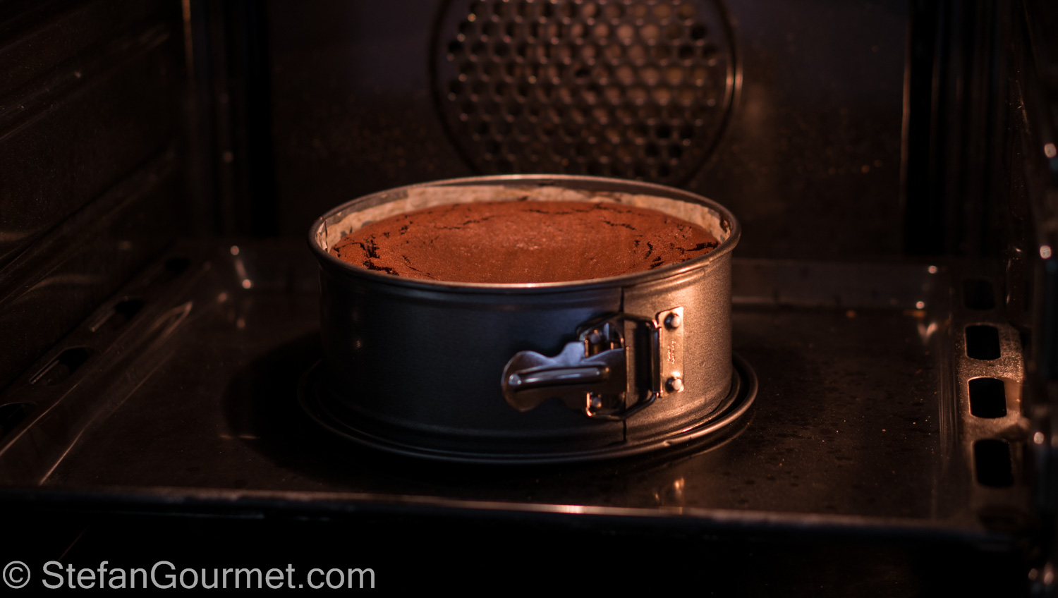 Instead, you only have to put all of the ingredients in the food processor to make the batter, pour the batter in a springform pan that you lined with parchment paper so the cake will definitely come out without any problems, and put it in the oven for half an hour. That is all. Even if you find baking intimidating, this should be manageable. If you want to show off some more, you could even whip up this cake after the main course with your guests watching, bake it a bit shorter and serve it as a lava cake for dessert.