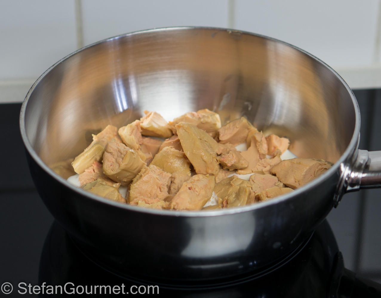 1. Thanks, Leif. I start with raw foie gras, that is why I cook it with the cream. If you were to use foie gras that is already cooked, you could simply cut it to size.