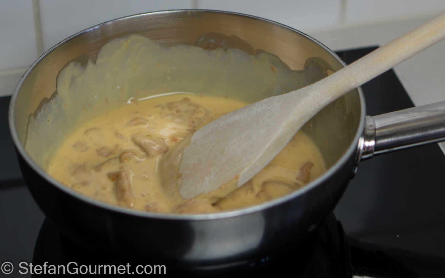Stir until the foie gras starts to melt. Make sure the cream won’t boil!