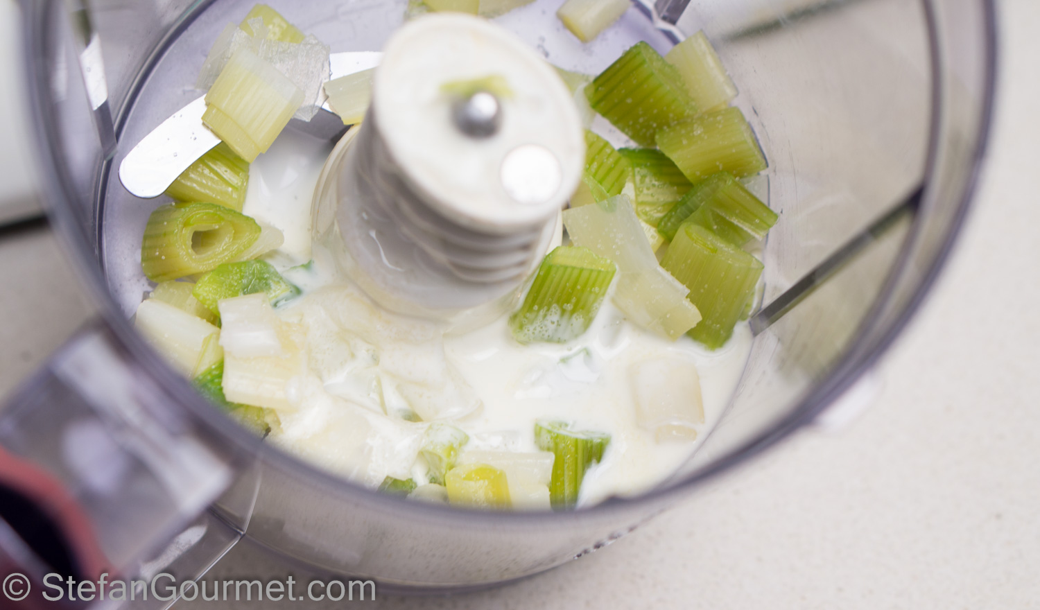 Puree the spring onions with 1 Tbsp of cream and some salt in the blender.