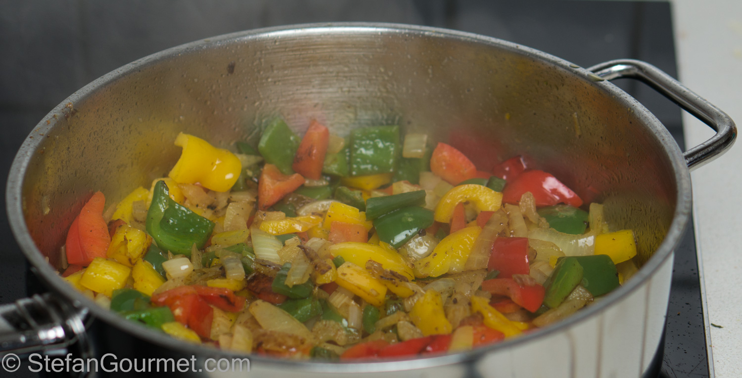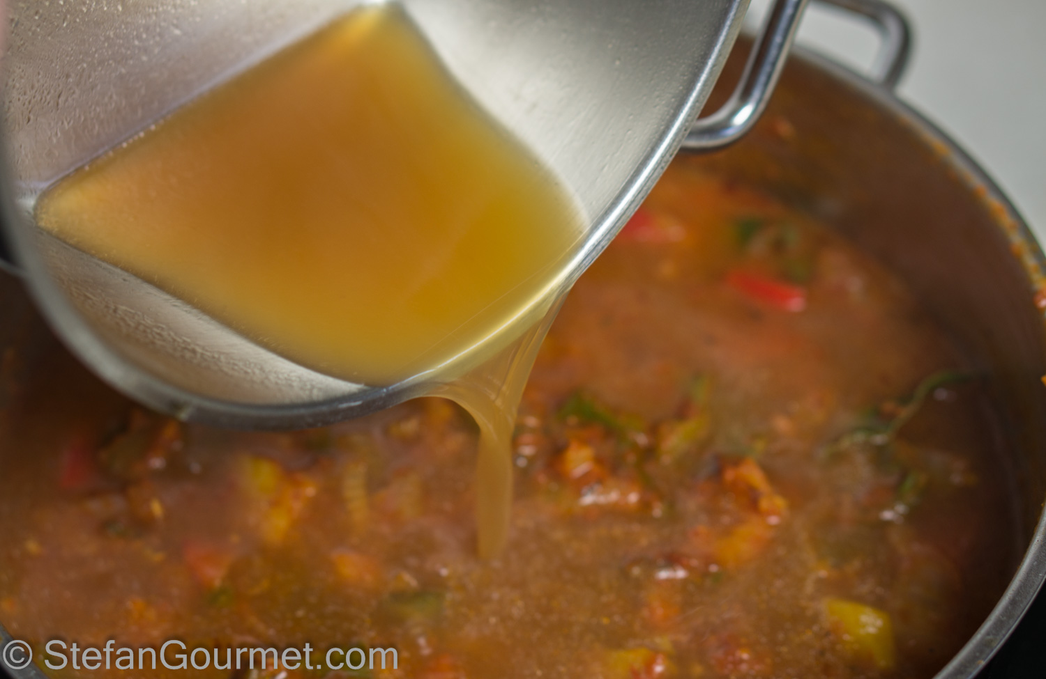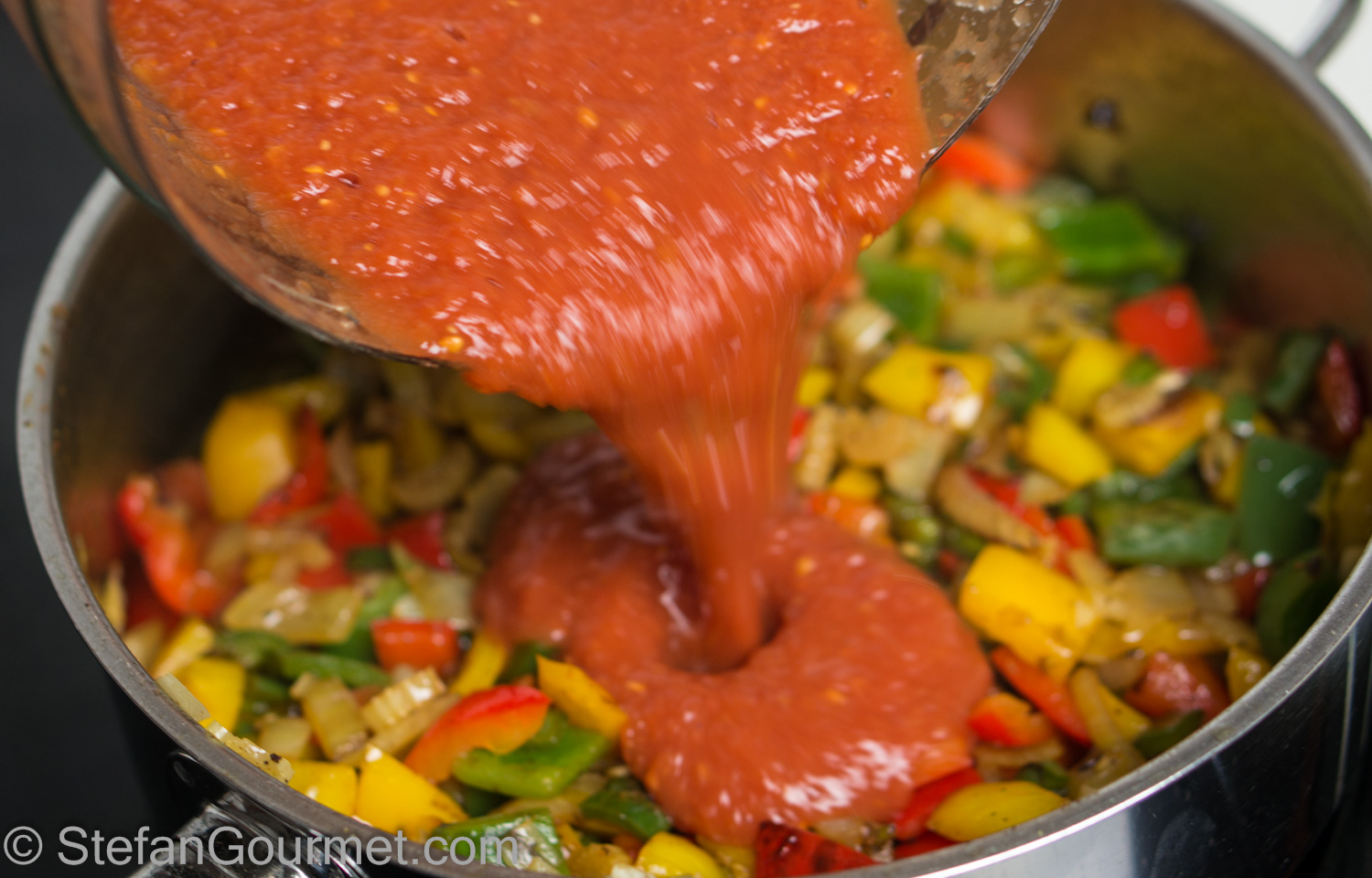 Bring to a boil, then lower the heat and allow to simmer, uncovered, until the sauce has a nice thick consistency and the vegetables are tender.