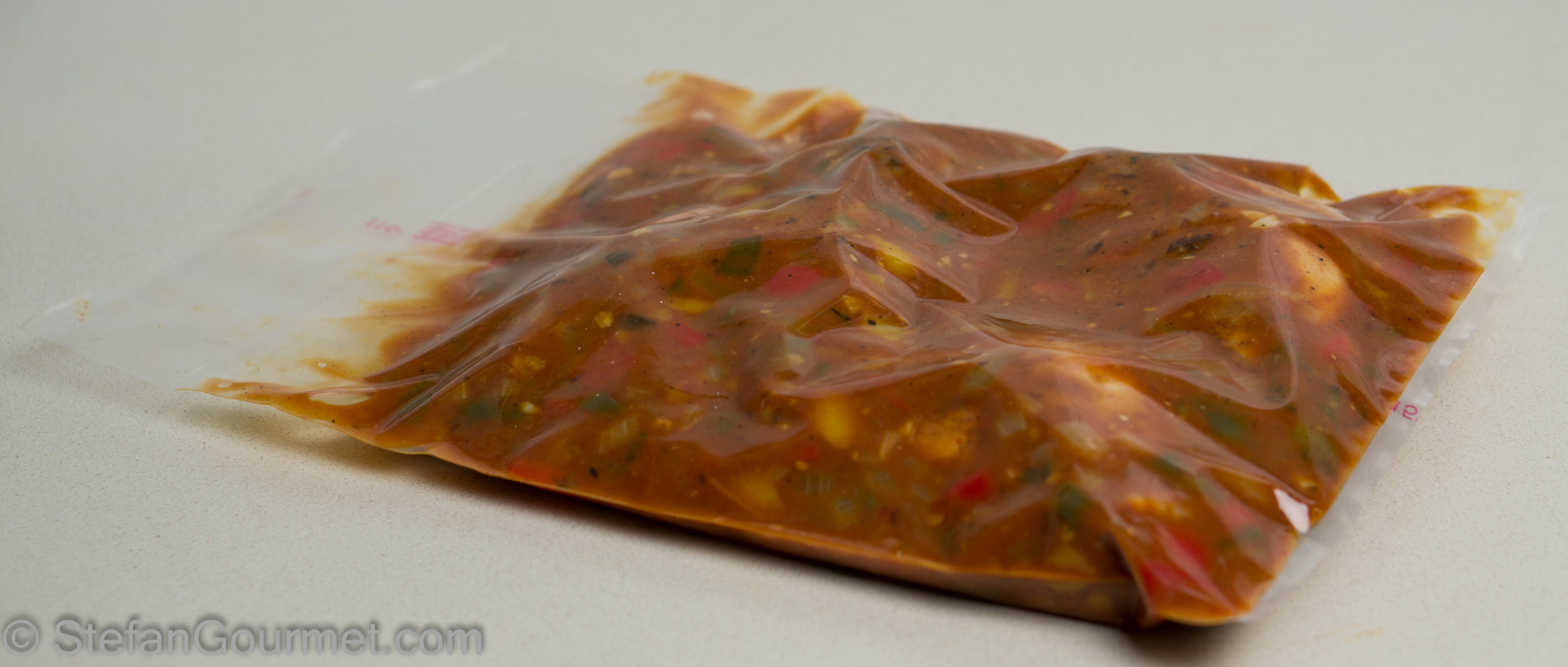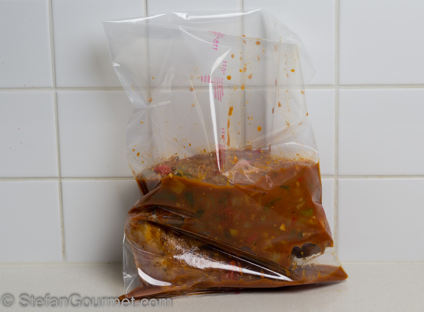 • For vacuum sealing a stew with liquid there are three options: when using a chamber vacuum sealer everything needs to be at room temperature (preferably refrigerator temperature) as otherwise the stew would boil at the low pressure, when using a ‘clamp’ vacuum sealer the liquid needs to be frozen as otherwise it would be sucked out, or a ziploc bag and the water displacement method need to be used. The latter is the only method that allows to seal the stew when it is still warm, rather than cooling or even freezing it.