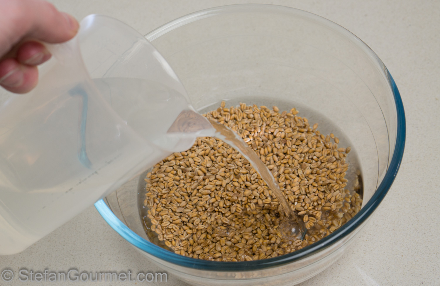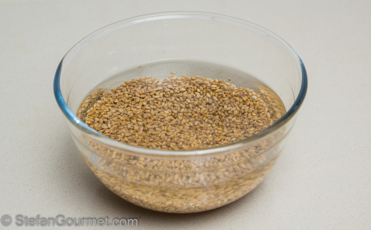 The day before, put the wheat in a bowl and add the water.