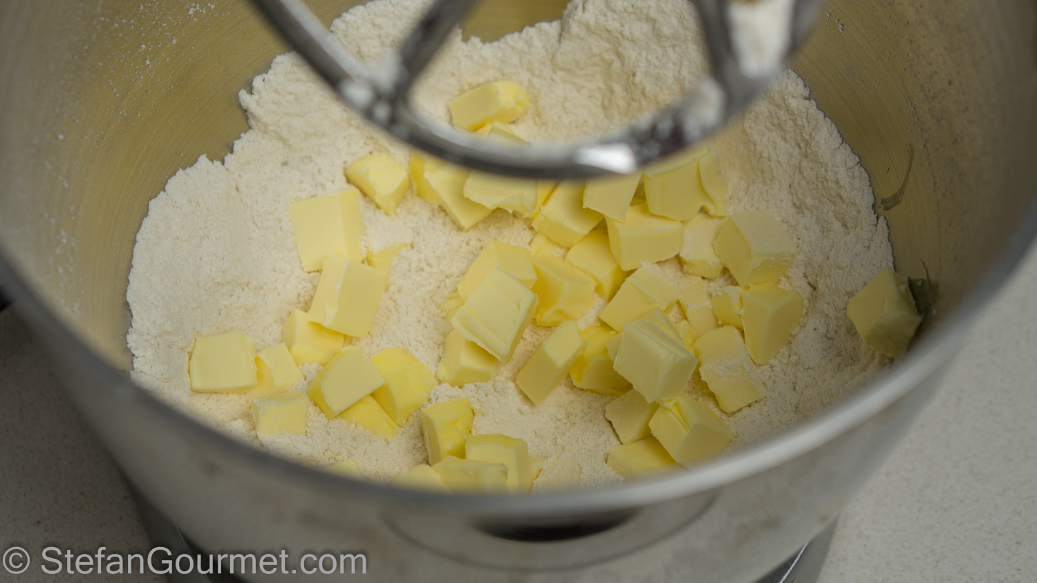 Add the butter, cut into cubes.
