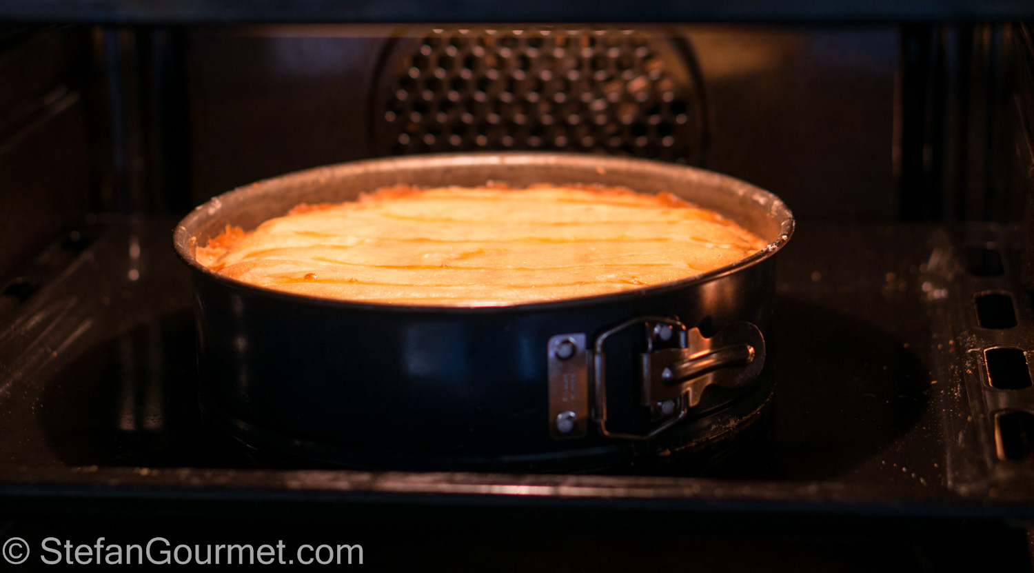 Bake at 180ºC/375ºF (or 160ºC/320ºF if fan forced) for 80 minutes, lowering the heat for the last 30 minutes, until the top is golden brown.