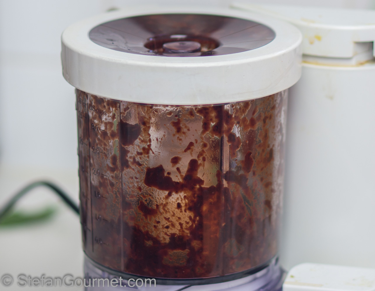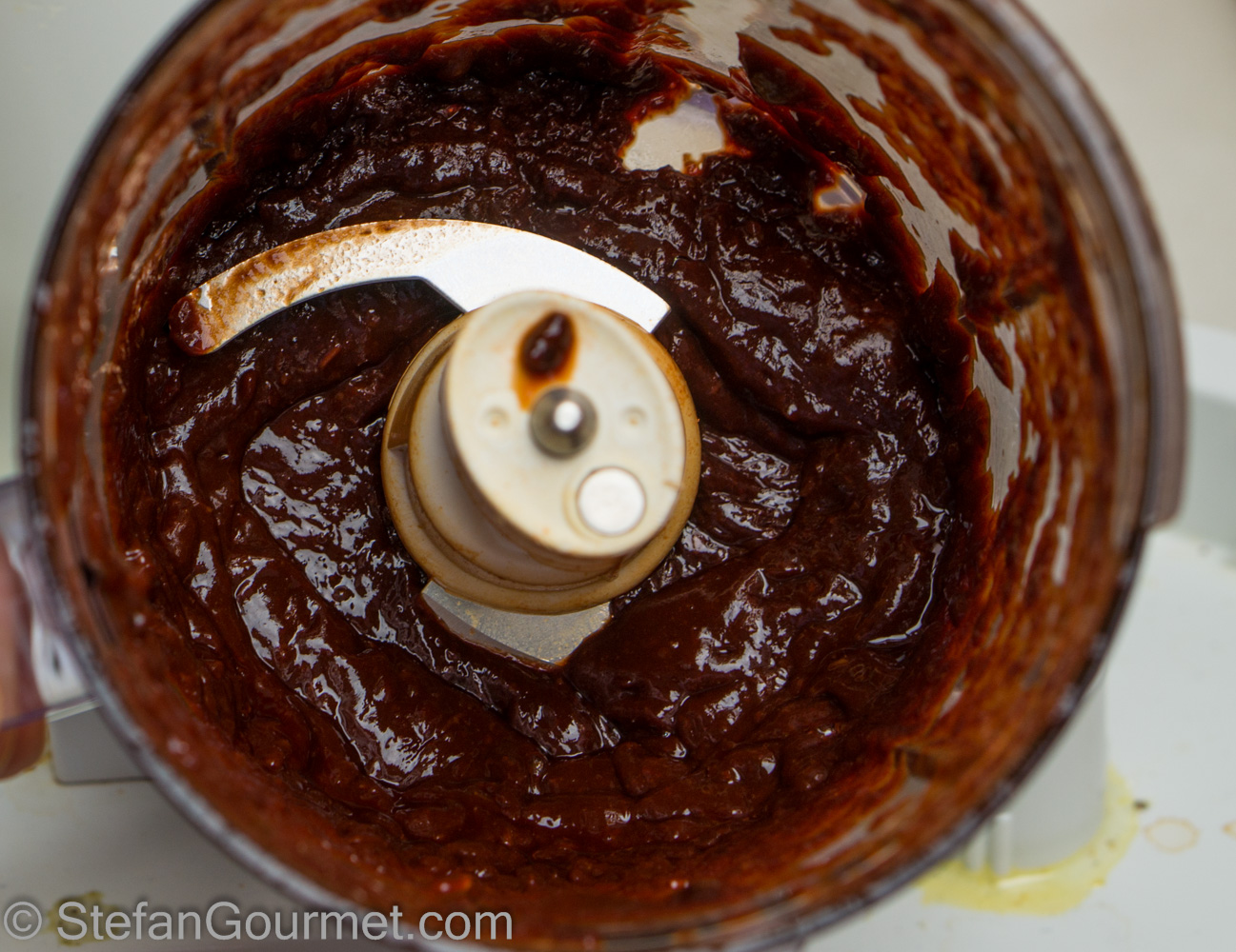 …to obtain a puree. Add more of the chile cooking liquid and scrape down the sides as needed.