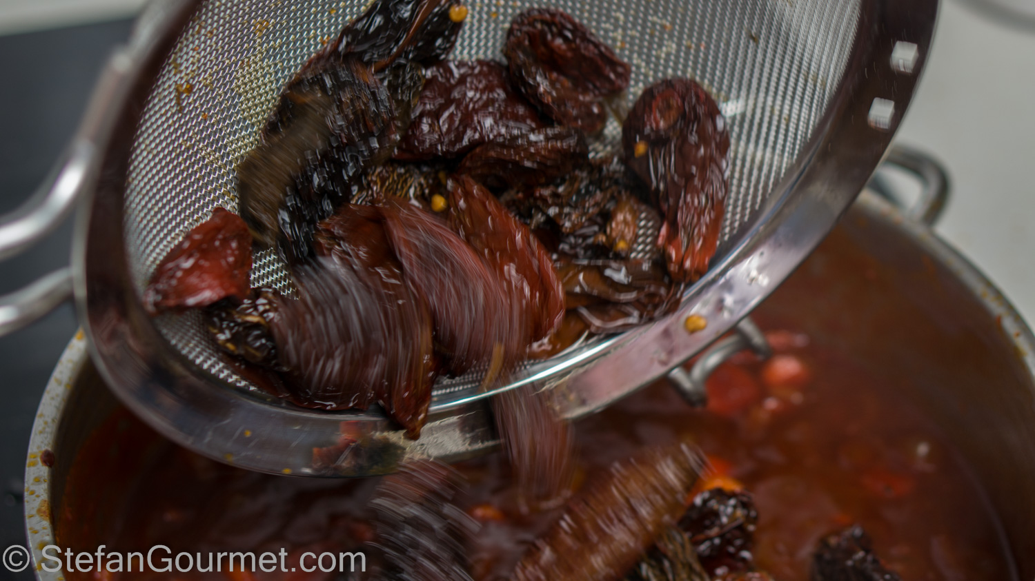 Drain the chipotles and add them to the sauce.