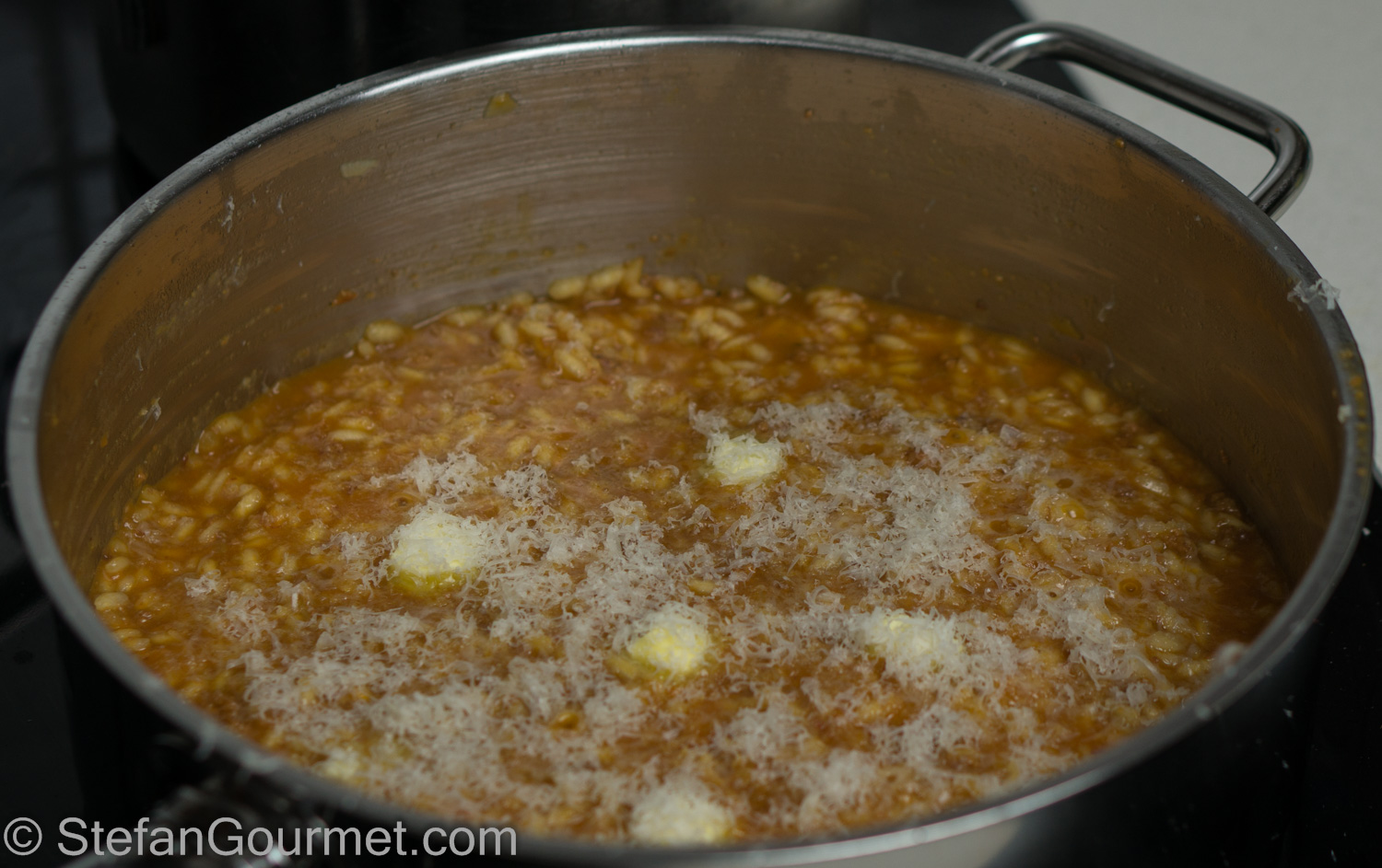 Turn off the heat. Add the remaining tablespoon of butter and some freshly grated parmigiano.