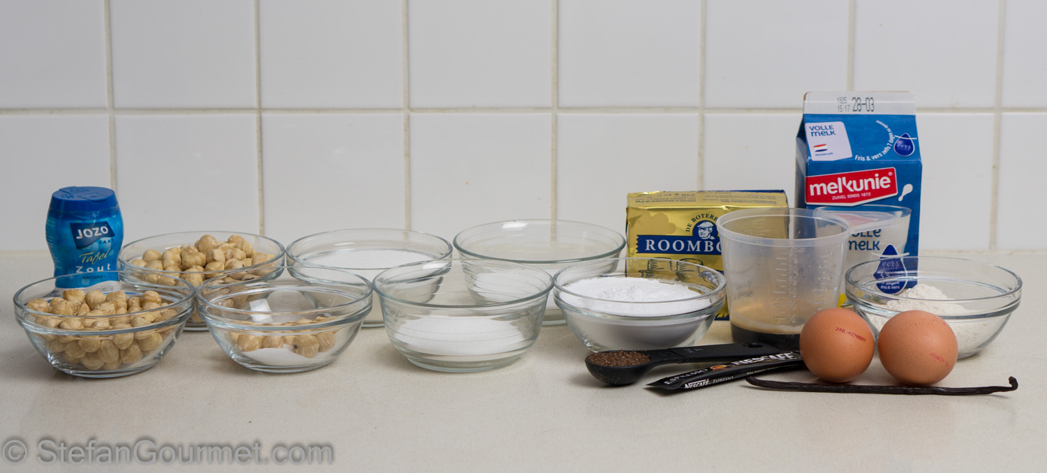 Hazelnut and coffee are a great combination, and this torte has it all: crunchy hazelnuts, crispy hazelnut meringue, and a luscious coffee-flavored buttercream. For this cake I used the recipe of the famous retired Dutch pastry chef, Cees Holtkamp. I’ve posted a hazelnut meringue cake with a simplified buttercream before, and CampariGirl commented that I should try to make the real thing. To make buttercream, you first need to make pastry cream. This cake is a lot of work, but it is worth it!