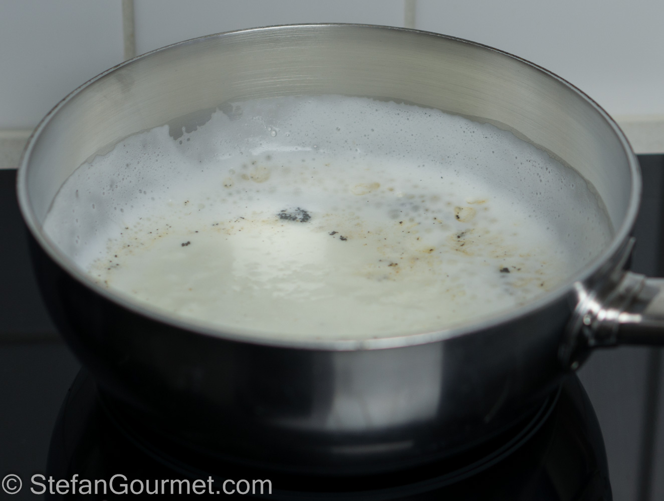 When the milk boils, turn off the heat.