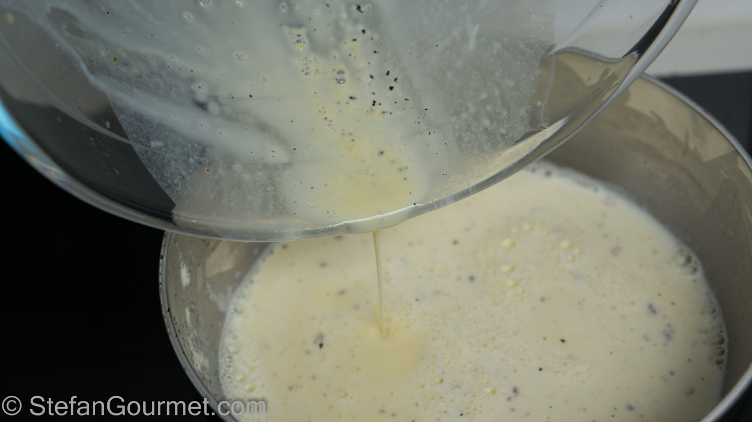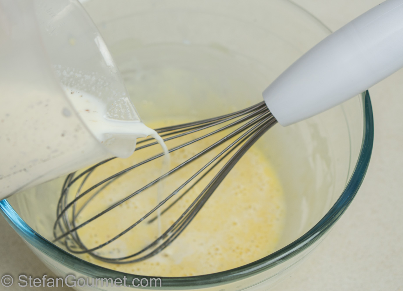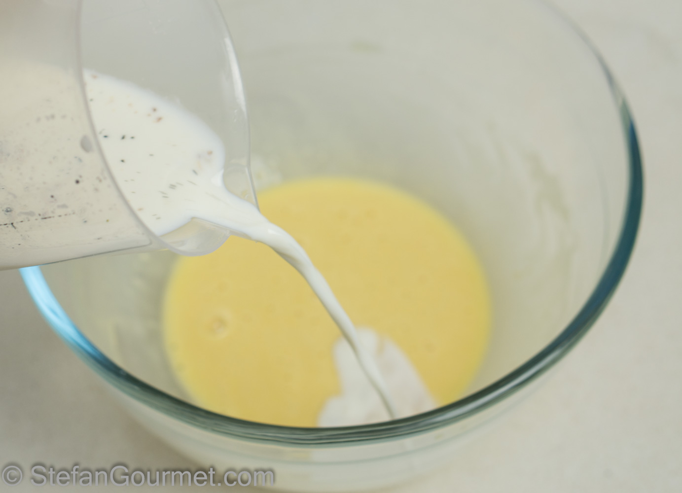 Add the hot milk to the egg yolk mixture in a thin stream…