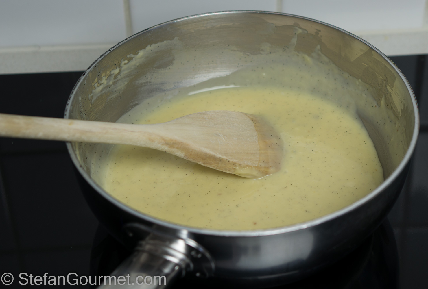 Cook, stirring, over medium heat until the pastry cream thickens. Turn off the heat.